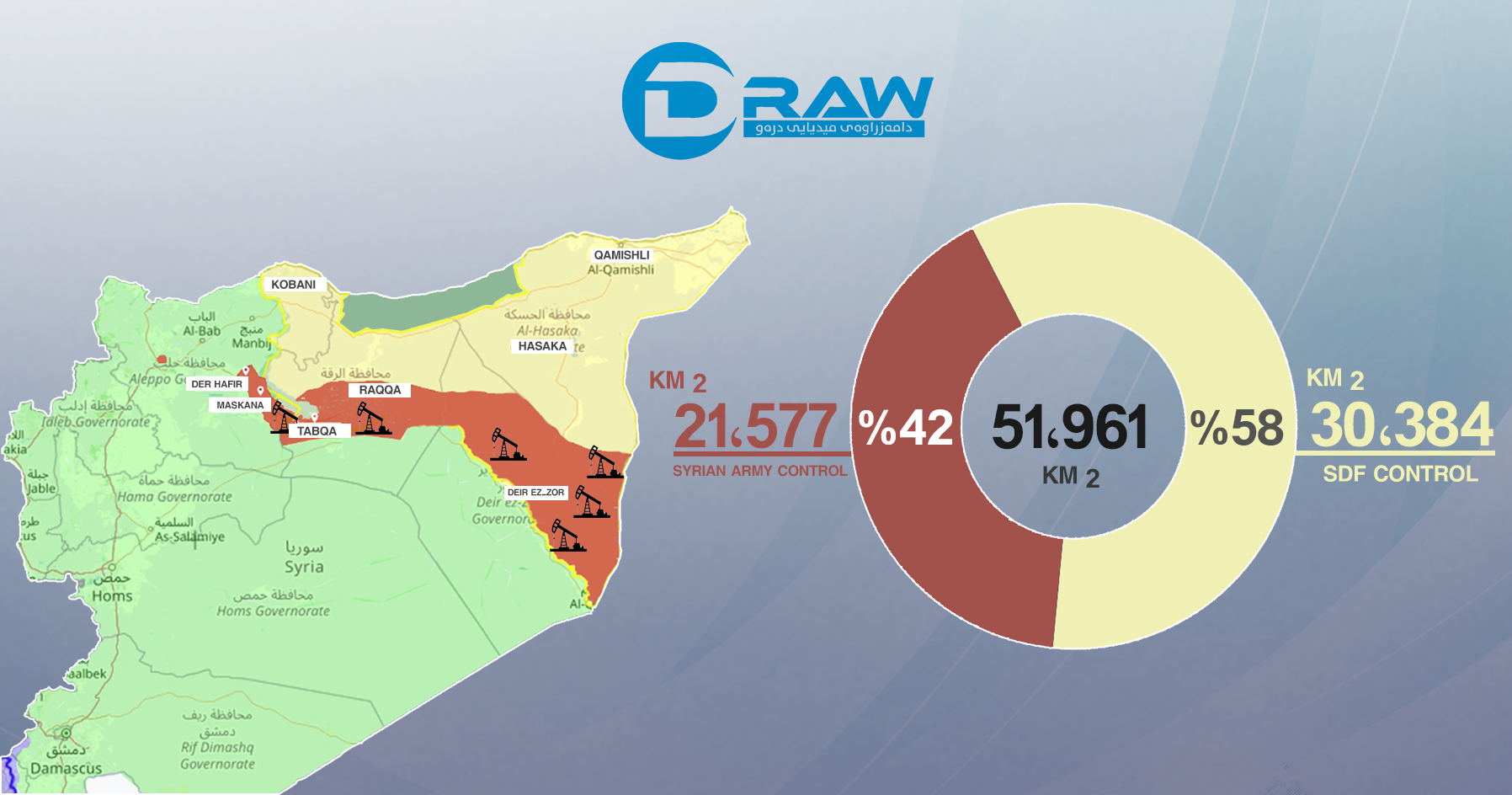 •    Key oil and gas fields in Deir ez-Zor and Raqqa, including Conoco, al-Omar, Tanak, and Thawra