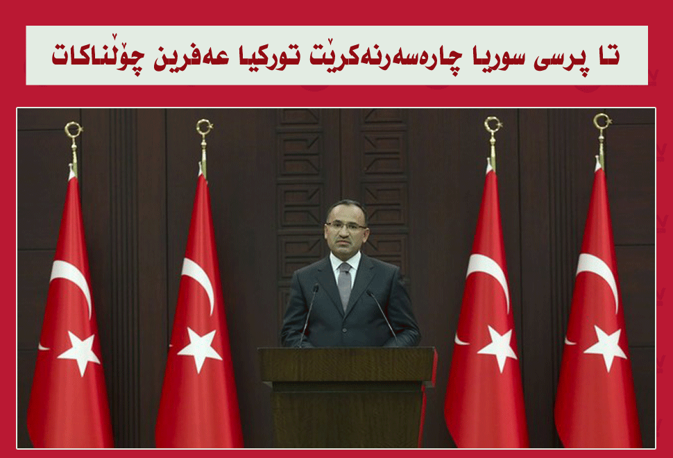 بەكر بۆزداغ وتەبێژی حكومەت توركیا رایدەگەیەنێت تا چارەسەری سیاسی كێشەی سوریا سوپای توركیا لە عەفرین ناكشێتەوە.