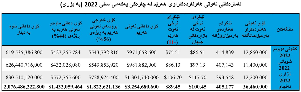 سێیەم: داهات و خەرجی نەوتی هەرێم لە چارەکی یەکەمی ساڵی 2022
