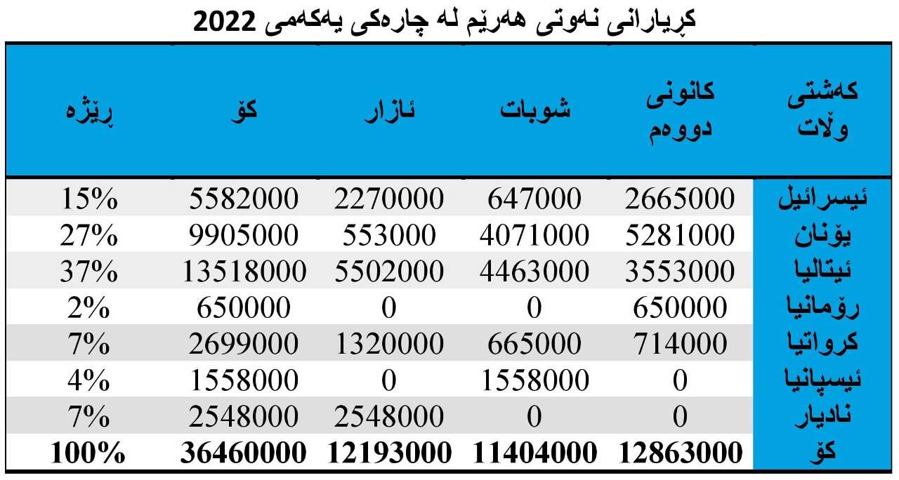 چوارەم: کڕیارانی نەوتی هەرێم لە چارەکی یەکەمی ساڵی 2022