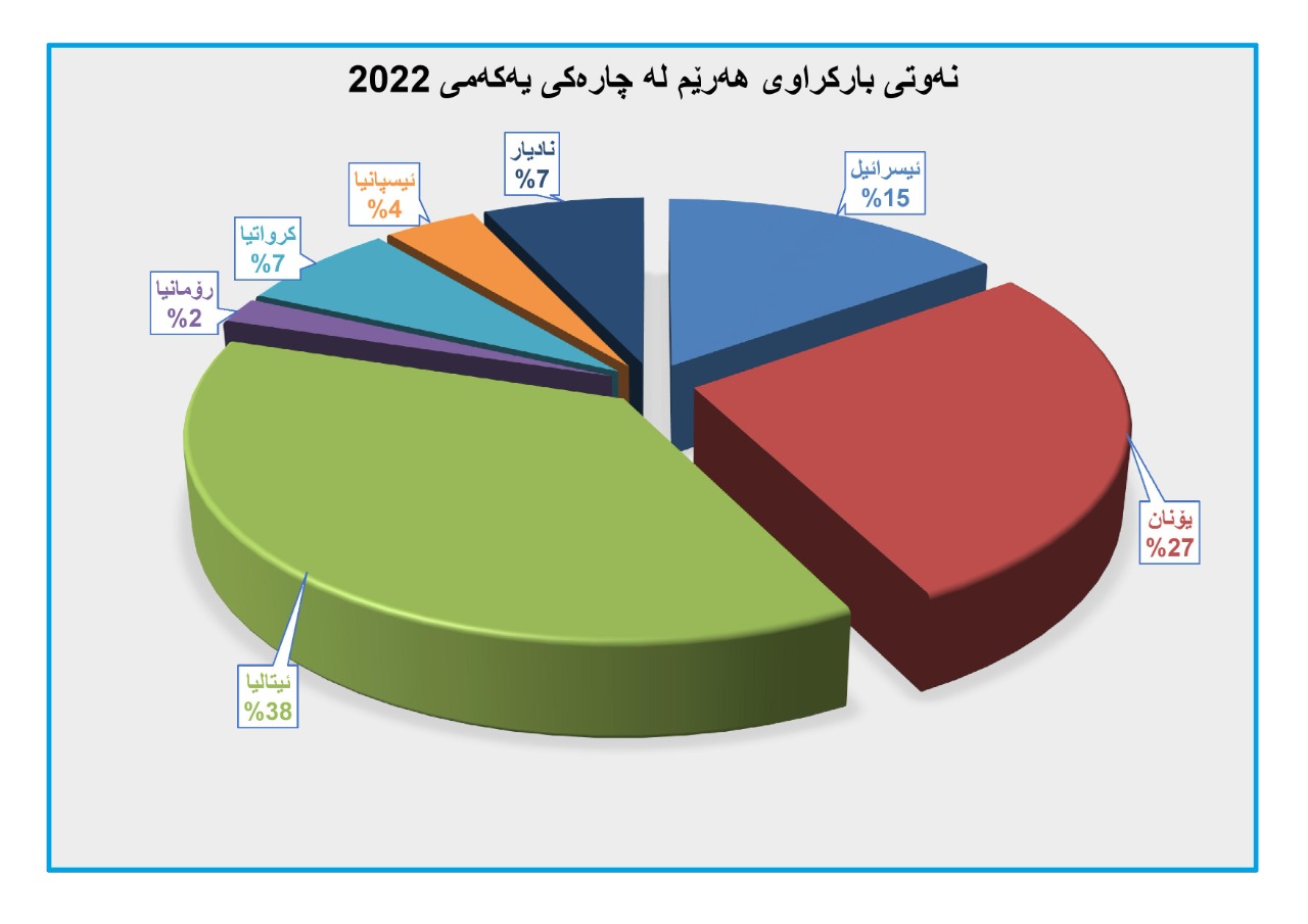 یەکەم: هەناردەی نەوتی هەرێم لە چارەکی یەکەمی ساڵی 2022