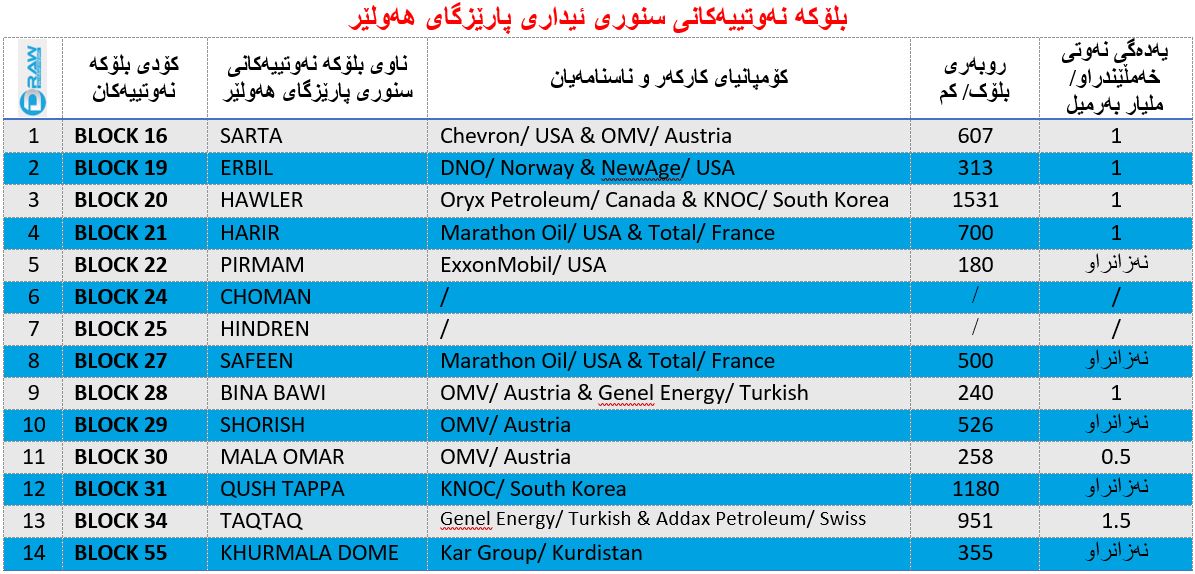 یەکەم؛ بلۆکە نەوتییەکانی پارێزگای هەولێر