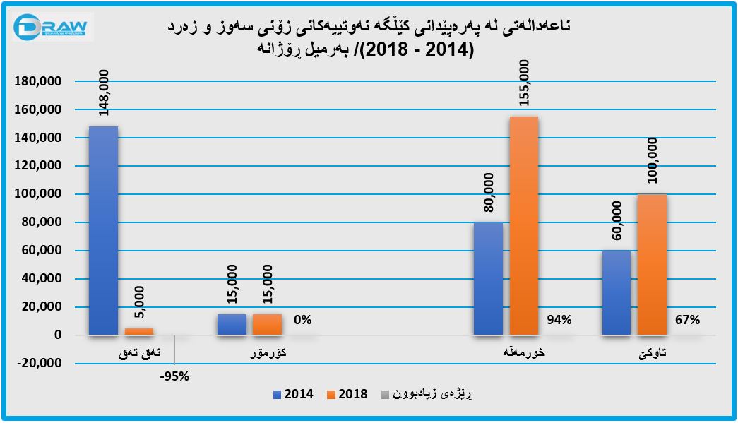 ئەمە لە کاتێکدایە (بلۆکی تەقتەق) کە لەڕووی ئیدارییەوە سەر بە پارێزگای هەولێرە، بەڵام لە ژێر قەڵەمڕەوی دەسەڵاتدارانی پارێزگای سلێمانیە، ئەم بلۆکە لە کۆتایی ٢٠٢٠ دا ئاستی بەرهەمهێنانی بریتی بووە لە (٨ هەزار و ٥٨٠) بەرمیل نەوت، لەکاتێکدا لە ساڵی ٢٠١٤ بەرهەمی رۆژانەی (١٤٨ هەزار) بەرمیل زیاتر بووە، لە ئێستاشدا بەرهەمی ڕۆژانەی ئەم کێڵگەیە بۆ خوار (٦ هەزار) بەرمیل لە ڕۆژێکدا دابەزیوە، ئەمەش وایکردووە بەشێک لە چاودێران پێیان وابێت کە ناعەدالەتی لە پەرەپێدانی کێڵگە نەوتییەکاندا بکرێت، بۆ نمونە بەپێی ڕاپۆرتێکی (د. عزەت سابیر) بە ناونیشانی "دۆخی دارایی و ئابووری هەرێمی كوردستان و پرۆسەی نەوت"، ئاماژەی کردووە بە ناعەدالەتی پەرەپێدانی کێڵگە نەوتییەکانی هەرێمی کوردستان (بڕوانە خشتەی ژمارە (3))