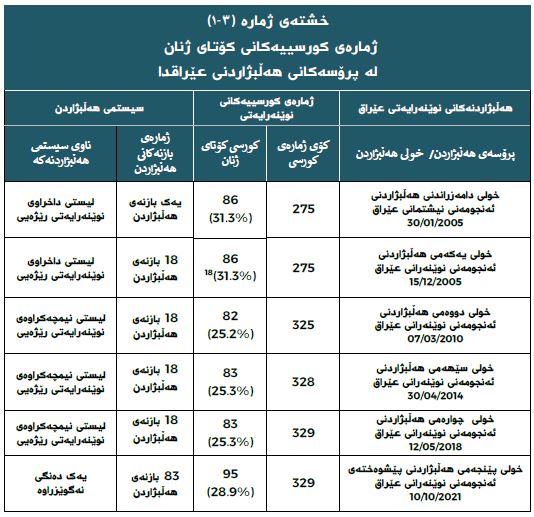 بەشی سێیەم: پێگەی ژن لە یاسای نوێی هەڵبژاردنی ئەنجومەنی نوێنەرانی عێراقدا