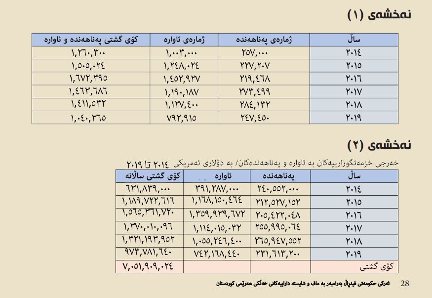 5- ڕاپۆرتێكی تایبهت به زانیارییه تایبهتهكان سهبارهت به ژمارهی ئاواره و پهناههندهكانی ههرێمی كوردستان و تێچووهكانیان.