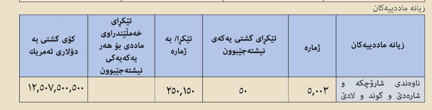 ـ ئەم بڕە پارەیەش لەسەر بنەمای هاوکێشەیەکی ژمێریاری دەستنیشان کراوە.
