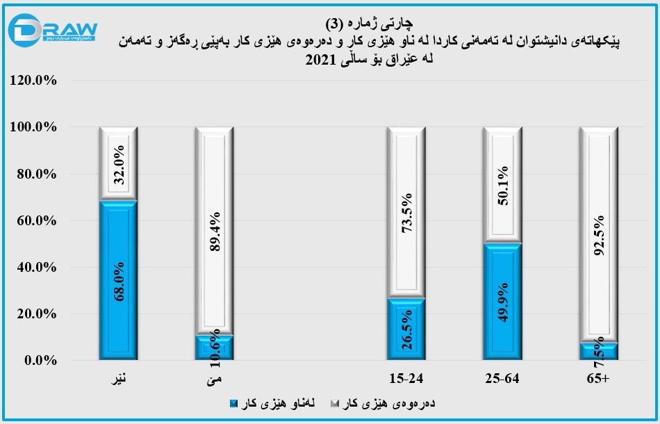 دەربارەی شێوازی دابەشبوونی ڕێژەی هێزی کاری دانیشتوانی عێراق بەپێی ڕەگەز و تەمەن و ئاستی خوێندەواری و پێکهاتەی دانیشتوان لە تەمەنی کاردا لە ناو هێزی کار و دەرەوەی هێزی کار بەپێی ڕەگەز و تەمەن، هاوکات ڕێژەی گەنجان لەدەرەوی پەرەوەردەو کار و ڕاهێنان بەپێی ڕەگەز لە پارێزگاکانی عێراق، تێکڕای داهاتی فەرمانبەرانی فەرمی بەپێی ڕەگەز بە(مانگ و سەعات) بەپێی ڕوپێوییەکە بۆ ساڵی (2021) بڕوانەی چارتەکانی ژمارە (1، 2، 3، 4 و 5)