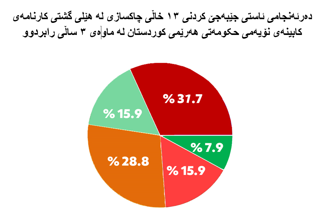 • لە هەندێک بوار هەنگاوەکانی چاکسازی دەستی پێکردووە، بەڵام هەوڵەکان هێشتا سەرەتایین، هاوڵاتیان وەک پێویست هەستیان بە ئەنجامەکان نەکردووە.