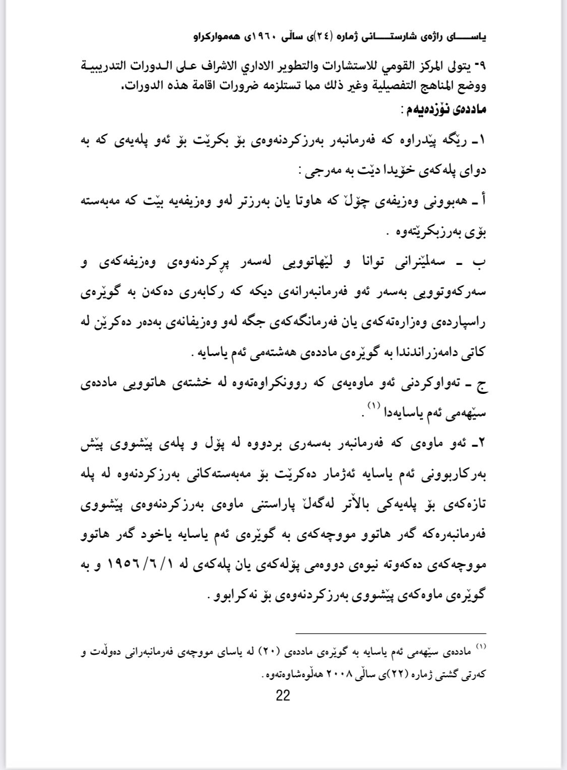 ئەوەی كابینەی پێشوو كردی، راگرتنی یاسا بوو بە بڕیار، ئەمە بۆ یاساناسان بابەتێكە كە زۆر جێگای تێبینی-یە، بەرزە موچەی فەرمانبەران بەپێی یاسای (موچەی فەرمانبەرانی دەوڵەتو كەرتی گشتی ژمارە 22ی ساڵی 2008)ی عێراق جێگیركراوە، ئەم یاسایە لە هەرێمی كوردستان كاری پێدەكرێت.