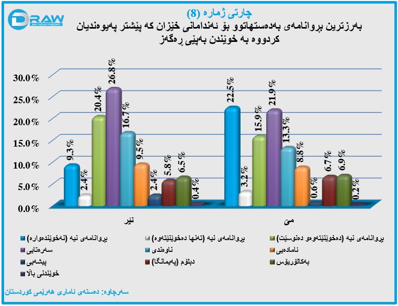 تایبهت به بەرزترین بڕوانامەی بەدەستهاتوو بۆ ئەندامانی خێزان كه پێشتر پهیوهندیان كردووه به خوێندن بهپێی ڕهگهز (بڕوانه چارتی ژماره (8))