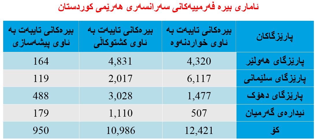 ئامارى بیرە فەرمییەکانى سەرانسەرى هەرێمى کوردستان