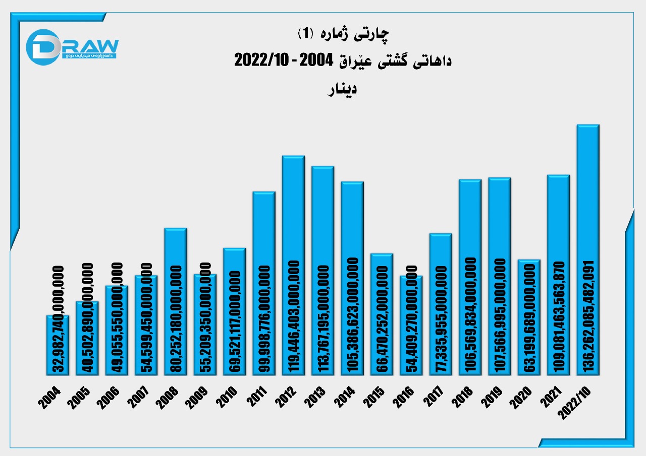 یەکەم؛ داهاتی گشتی عێراق لە ساڵانی (2004 – مانگی 10/2022)