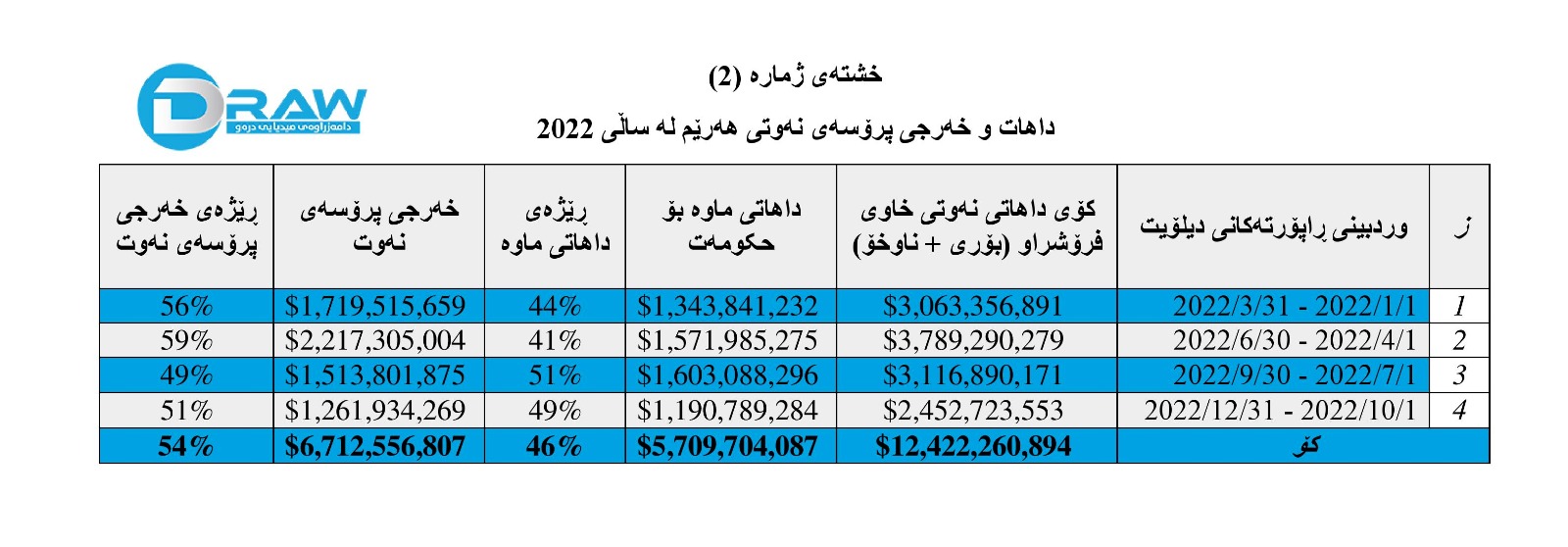 بەپێی ڕاپۆرتەکانی دیلۆیت؛ حکومەتی هەرێمی کوردستان لە تەواوی ساڵی (2022)دا؛