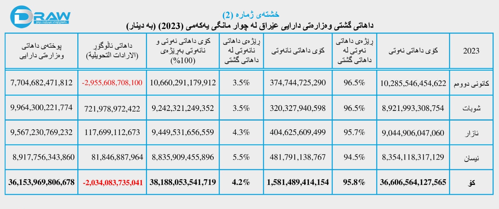 تەوەری دووەم؛ داهات و خەرجی گشتی وەزارەتی دارایی عێراق لە چوار مانگی یەکەمی (2023)دا