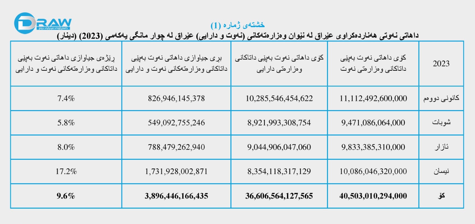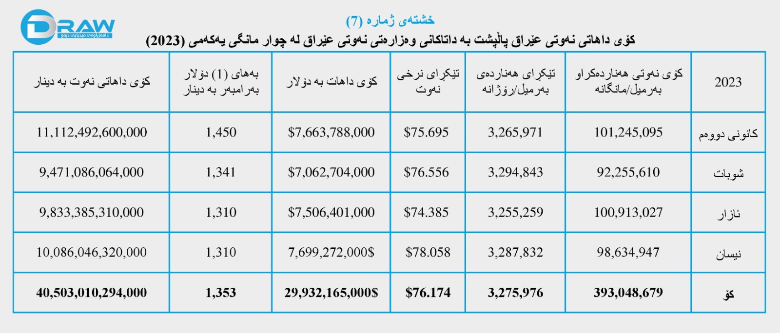 تەوەری سێیەم؛ داهاتی نەوتی عێراق لە چوار مانگی یەکەمی 2023
