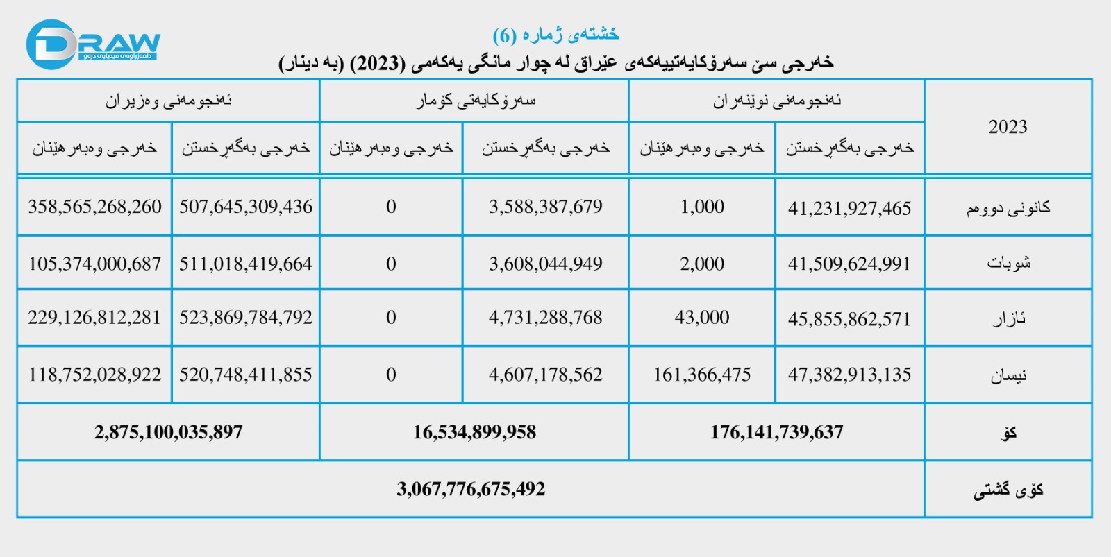 رۆژی (17ی حوزەیرانی 2023) وەزارەتی دارایی عێراق داهات و خەرجی خۆی تا کۆتایی نیسانی ئەمساڵ بڵاوکردەوە، بەپێی ڕاپۆرتەکە؛