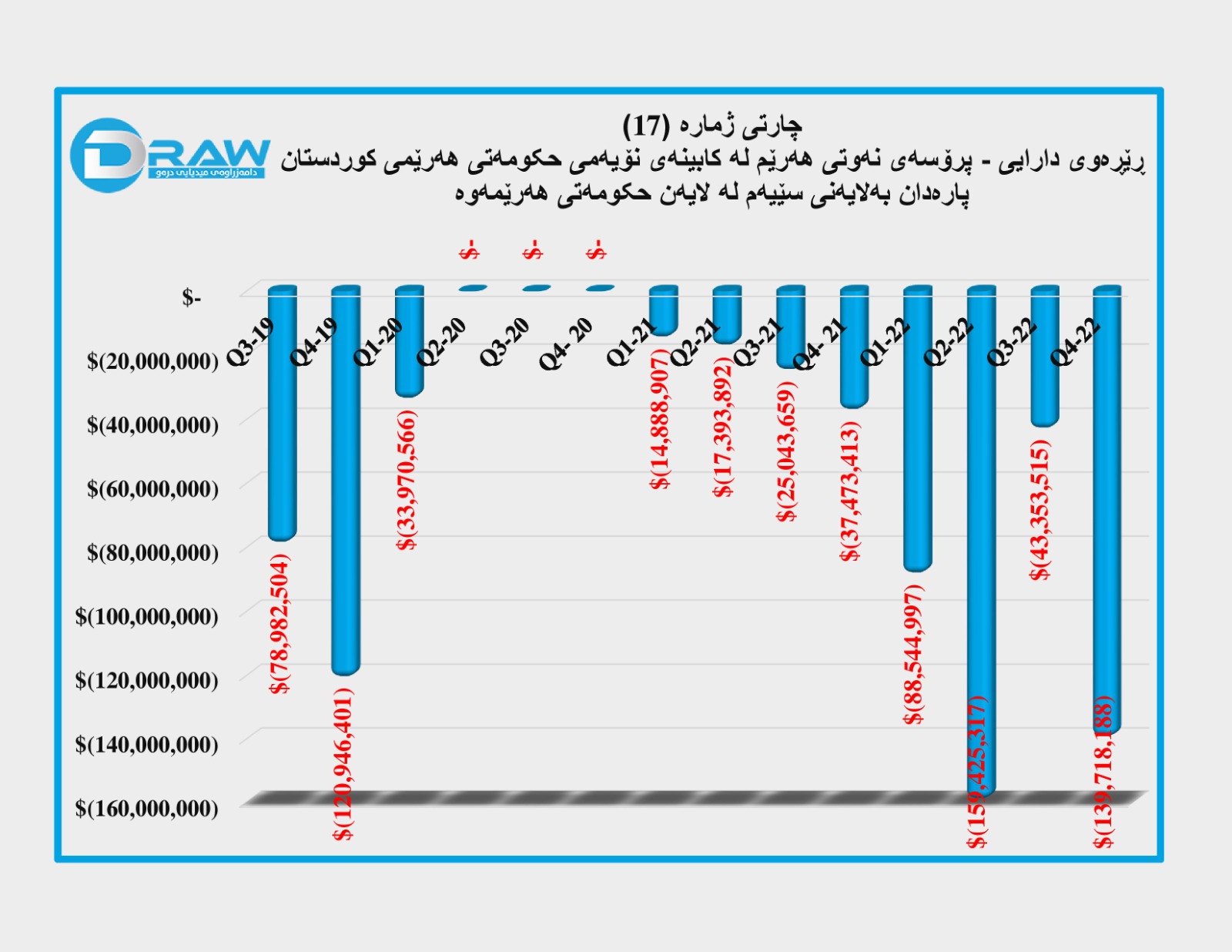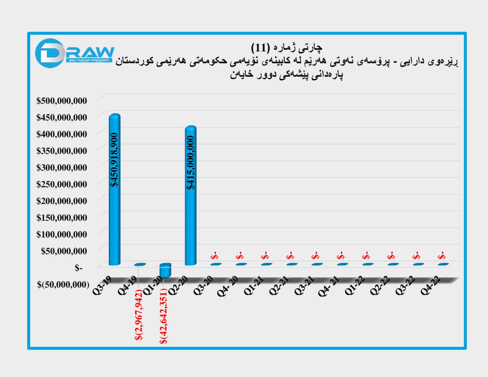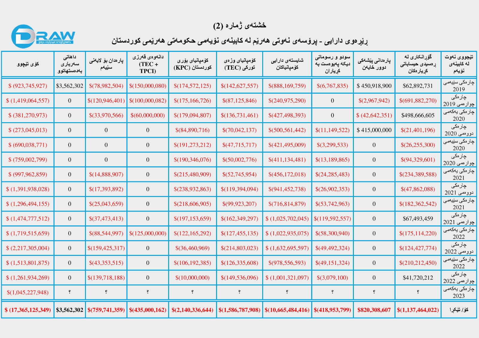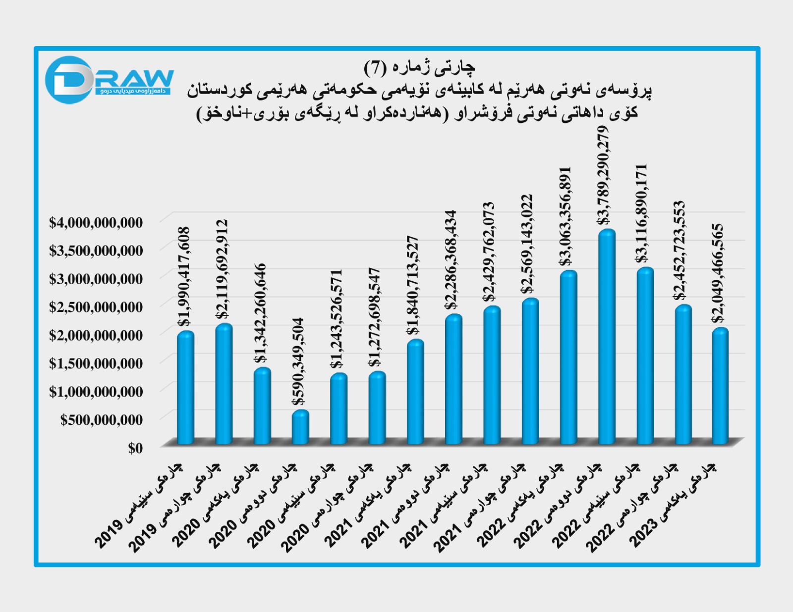 کۆمپانیای دیلۆیت بۆ چارەکی یەکەمی (2023) هیچ داتاو ڕاپۆرتێکی بڵاو نەکردووەتەوە، بۆیە بۆ داتاکانی ئەو ماوەیە لە بارەی بڕی هەناردەو داهات و خەرجی نەوت پشت بە زانیارییە رۆژنامەوانییەکان بەستراوە.