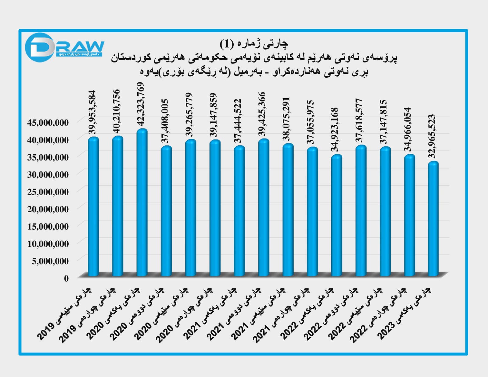 پرۆسەی نەوتی هەرێم لە کابینەی نۆیەم (ئامارو داتا)