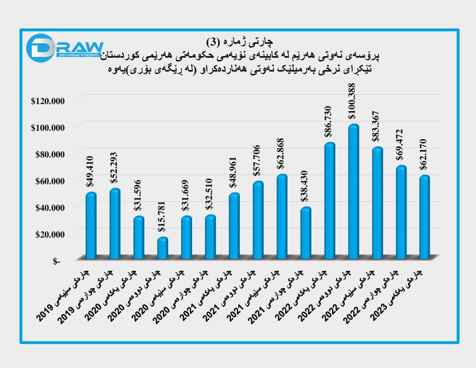 3. تێکڕای نرخی نەوتی فرۆشراوی هەرێم لە ڕێگەی بۆرییەوە