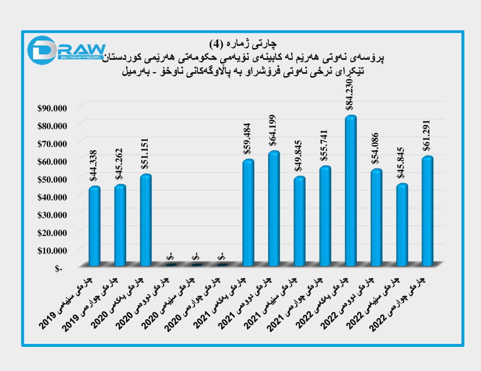 4. تێکڕای نرخی نەوتی فرۆشراوی هەرێم لە ناوخۆ