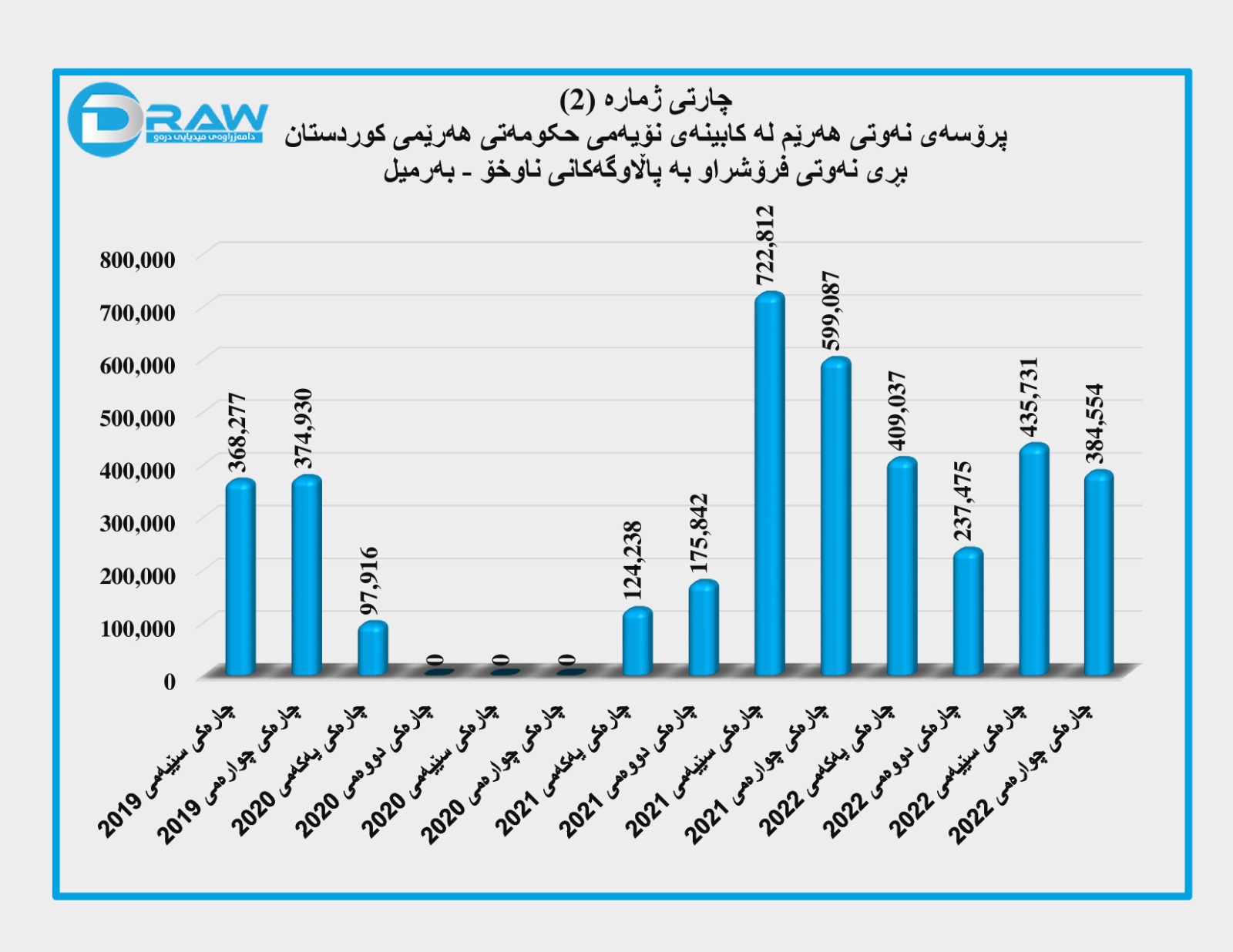 ? حکومەتی هەرێمی کورستان بڕی (567 ملیۆن) بەرمیل نەوتی لە ڕێگەی بۆری و بڕی (3 ملیۆن) بەرمیل نەوتی لە بازاڕەکانی ناوخۆ فرۆشتووە.