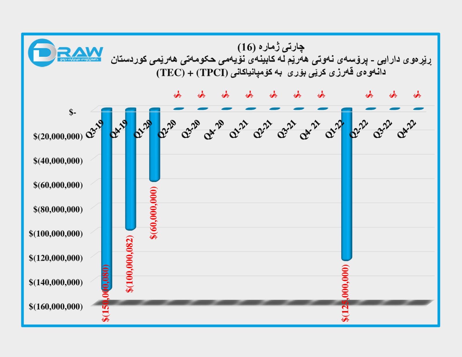 بەپێی ڕاپۆرتەکانی دیلۆیت حکومەتی هەرێمی کوردستان بە چوار گوژەمە لە (چارەکی سێیەم و چوارەمی (2019)، چارەکی یەکەمی (2020) و چارەکی یەکەمی (2022)) بڕی (435 ملیۆن 162) دۆلار لە بری قەرز دراوەتەوە بە کۆمپانیای وزەی تورکی (TEC) و کۆمپانیای نەوتی نێودەوڵەتی تورکی (TPCI). بۆ وردەکاری بڕوانە (خشتەی ژمارە (2) و چارتی ژمارە (16)).