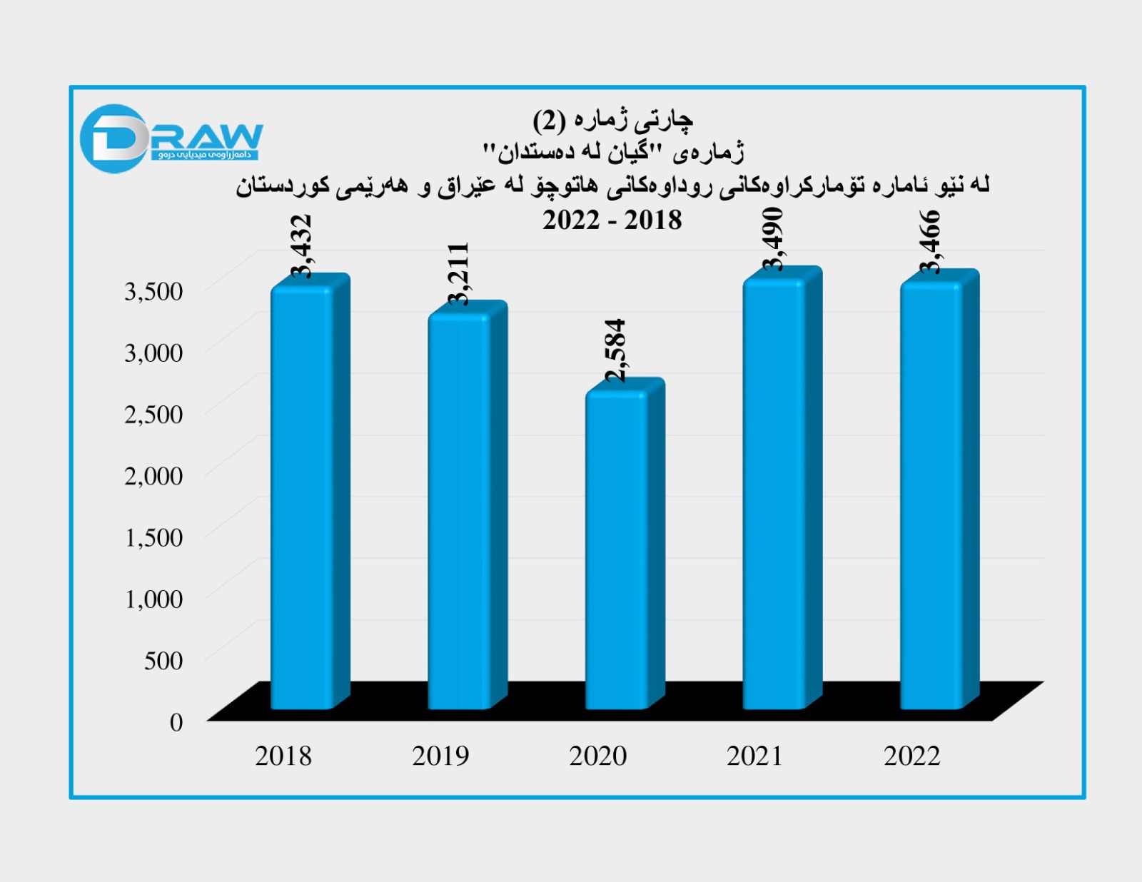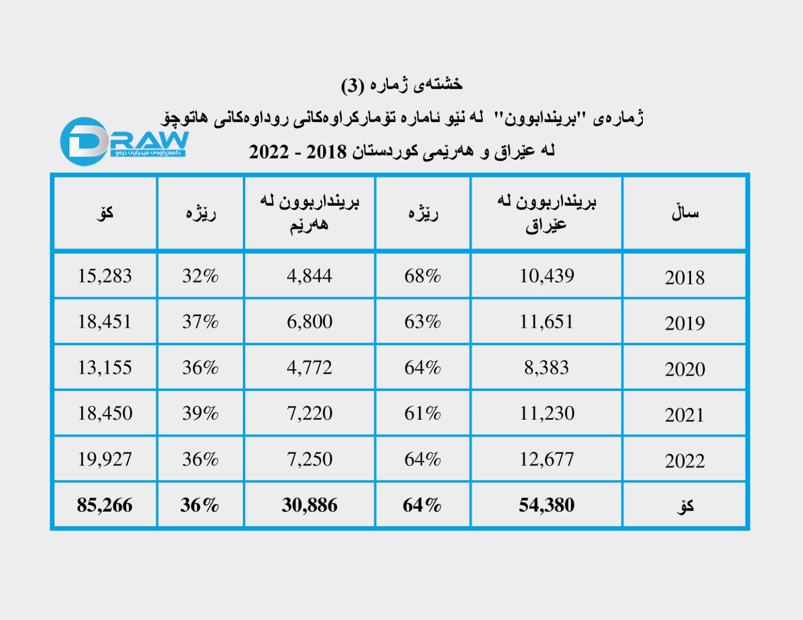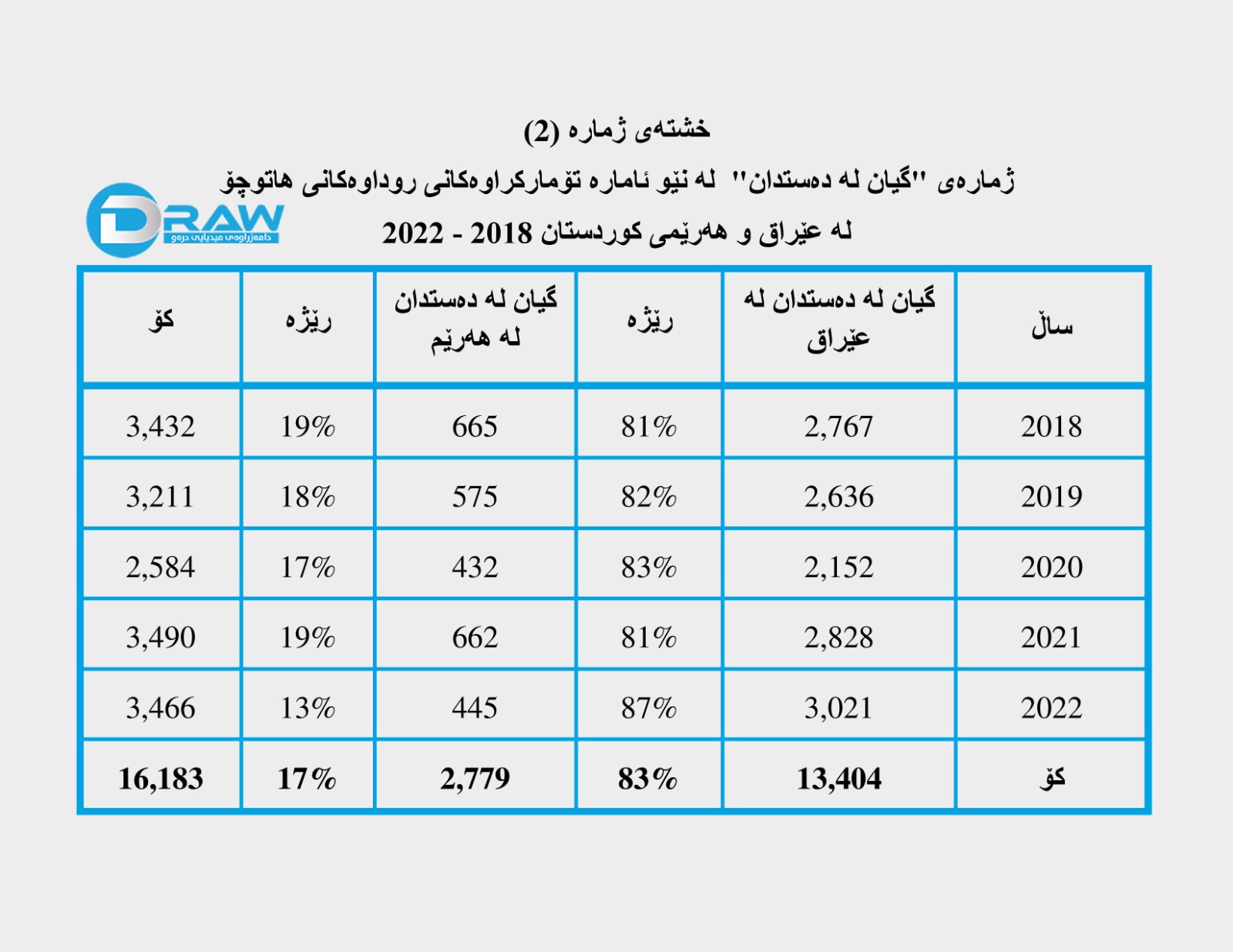 ? پاڵپشت بە داتاکانی دەزگای ناوەندی ئاماری وەزارەتی پلاندانانی عێراق و بەڕێوەبەرایەتی گشتی هاتوچۆی هەرێم لە ماوەی ساڵانی (2018 - 2022)؛