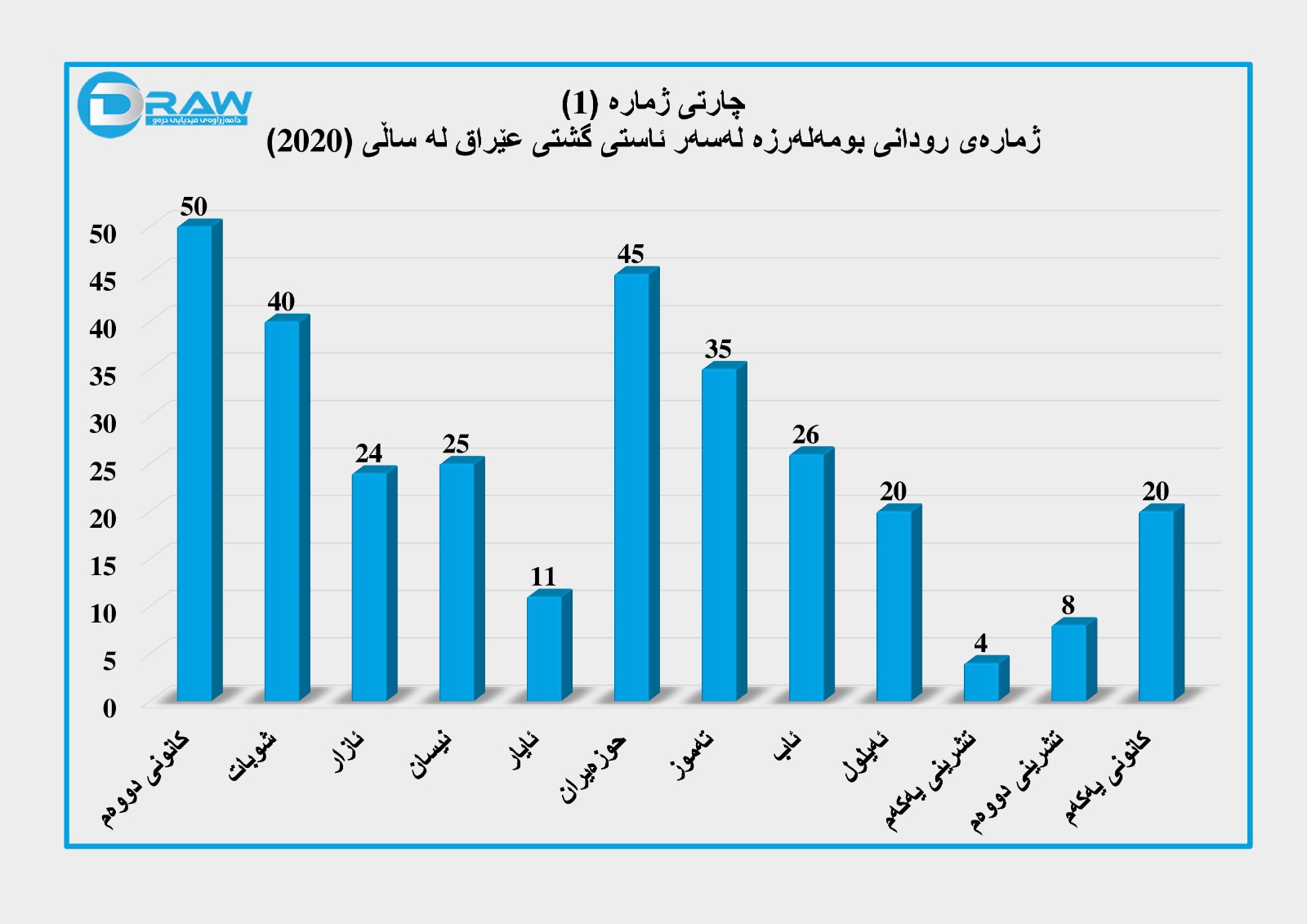 زۆرترین حاڵەتەکانیش لە مانگی کانونی دووەمی (2020) تۆمارکراوەو کەمترین حاڵەتیش لە مانگی تشرینی یەکەم بووەو گەیشتووە (4) حاڵەت و سەرجەمیان لەسەر سنورەکانی عێراق تۆمار کراون.