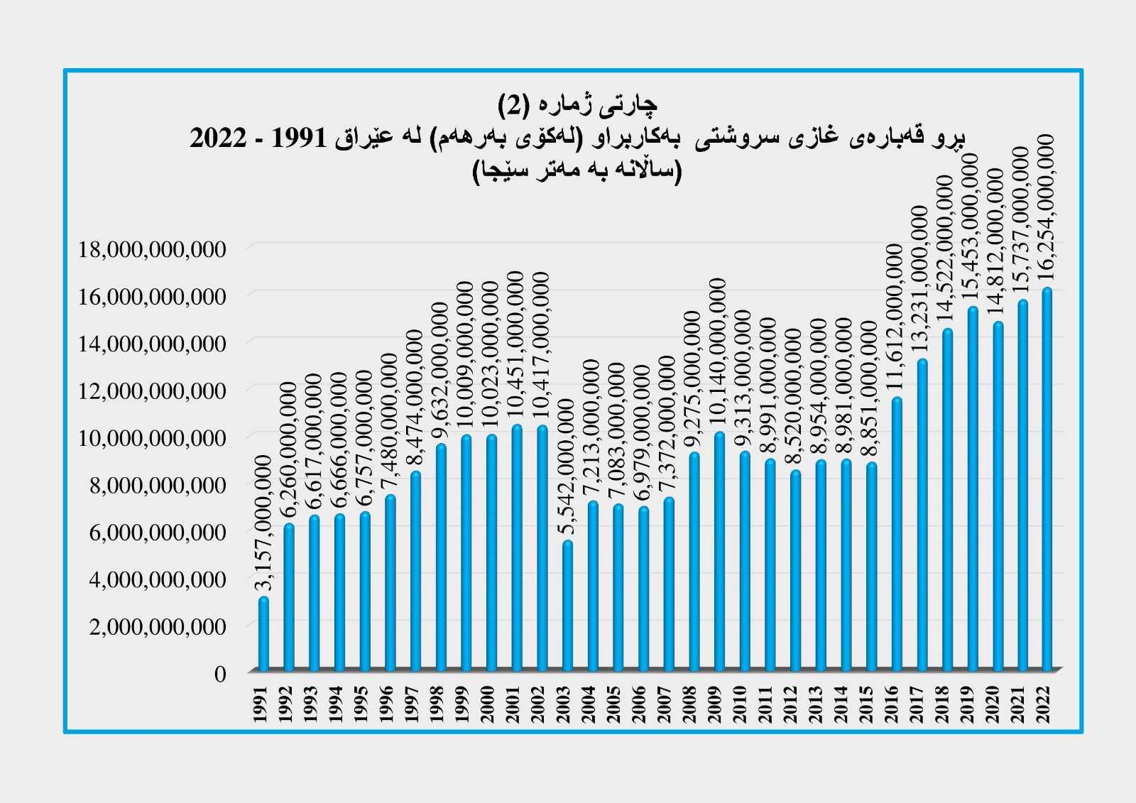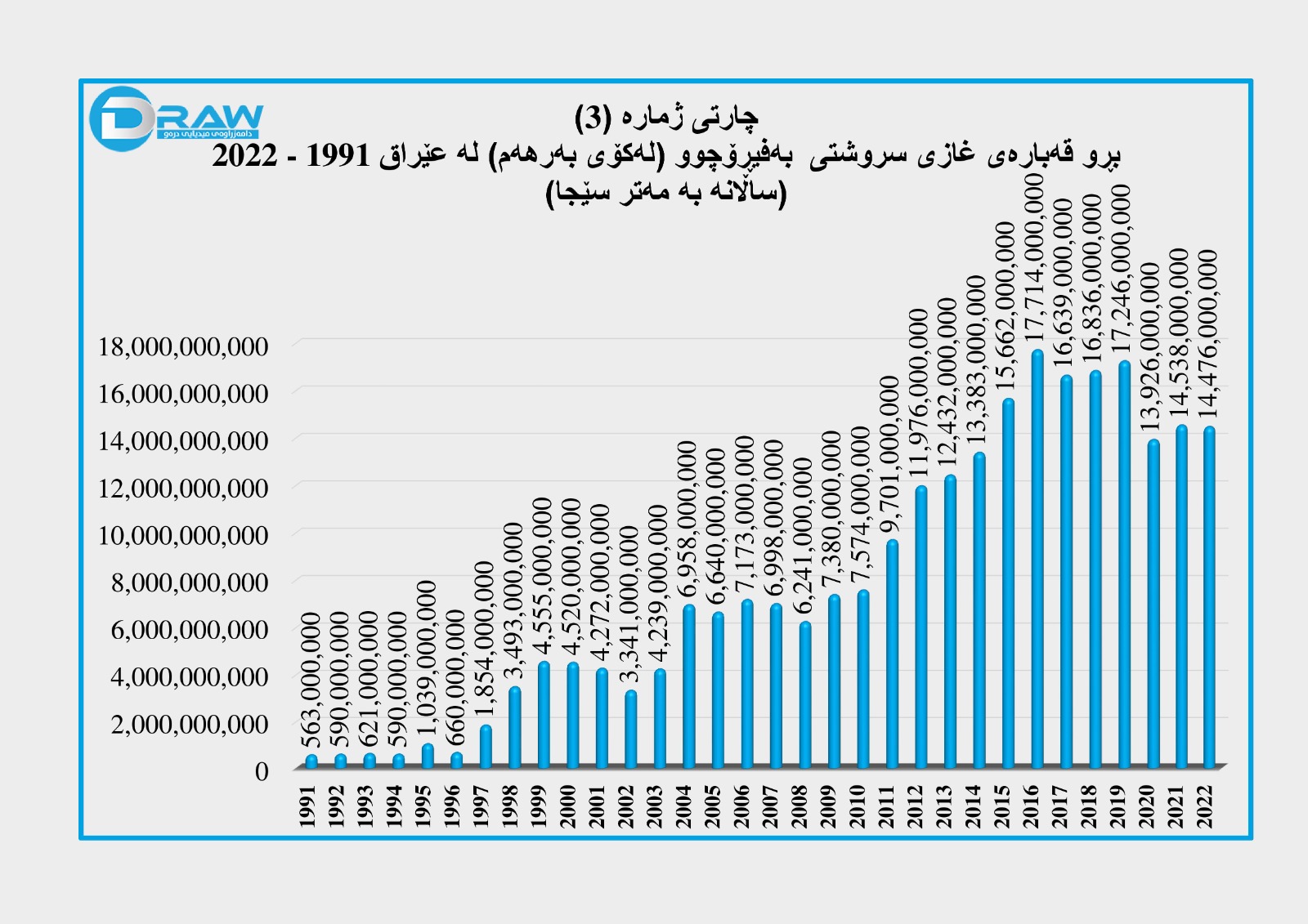 لەم ڕاپۆرتەدا پاڵپشت بە بڵاوکراوەی وەزارەتی پلاندانانی عێراق – دەزگای ناوەندی ئامار (کۆمەڵە ئاماری ساڵانە 2022 - 2023) کە داتاکانی لە وەزارەتی نەوتی عێراق وەرگرتووە. تیشک دەخەیەنە سەر بڕو قەبارەی بەرهەمهێنانی غازی سروشتی رێژەی بەهەدەرچوونی لە عێراق لە ماوەی ساڵانی (1991 - 2022).