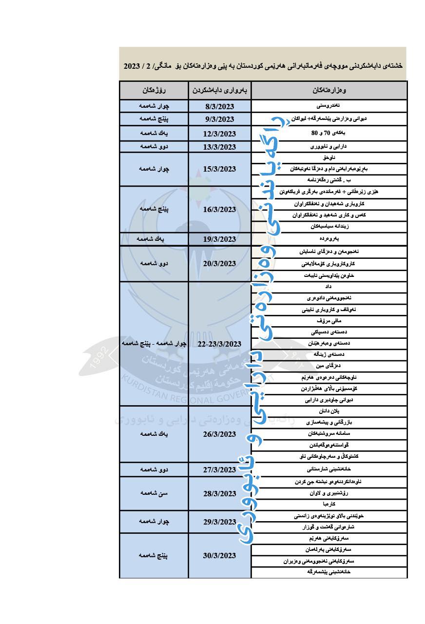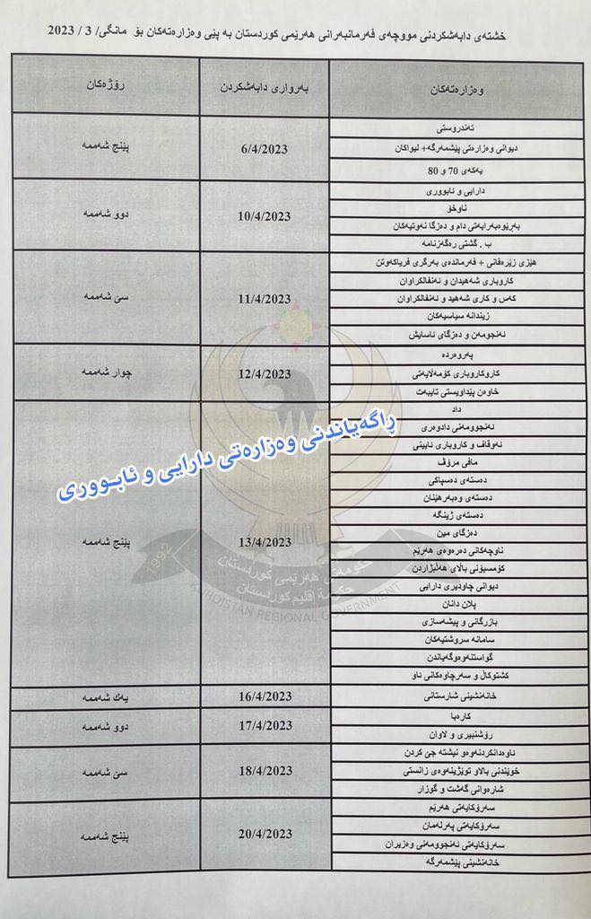 • لە رۆژی 8ی ئازار موچەی مانگی دووی دابەشكردووە
