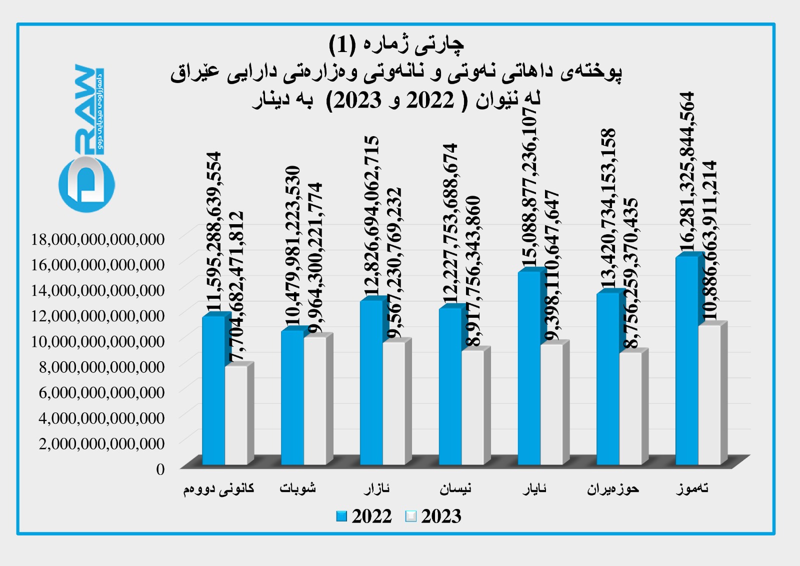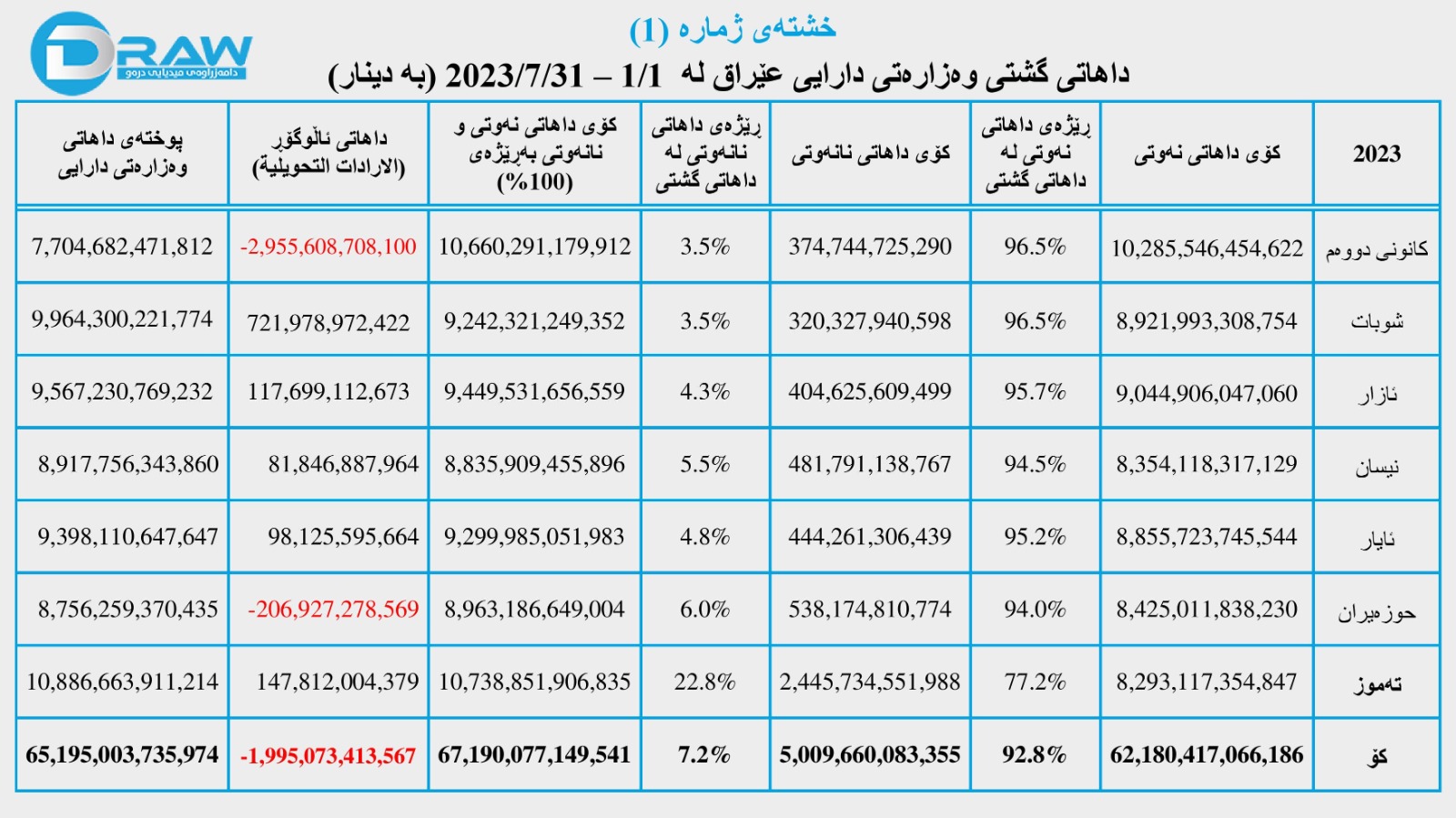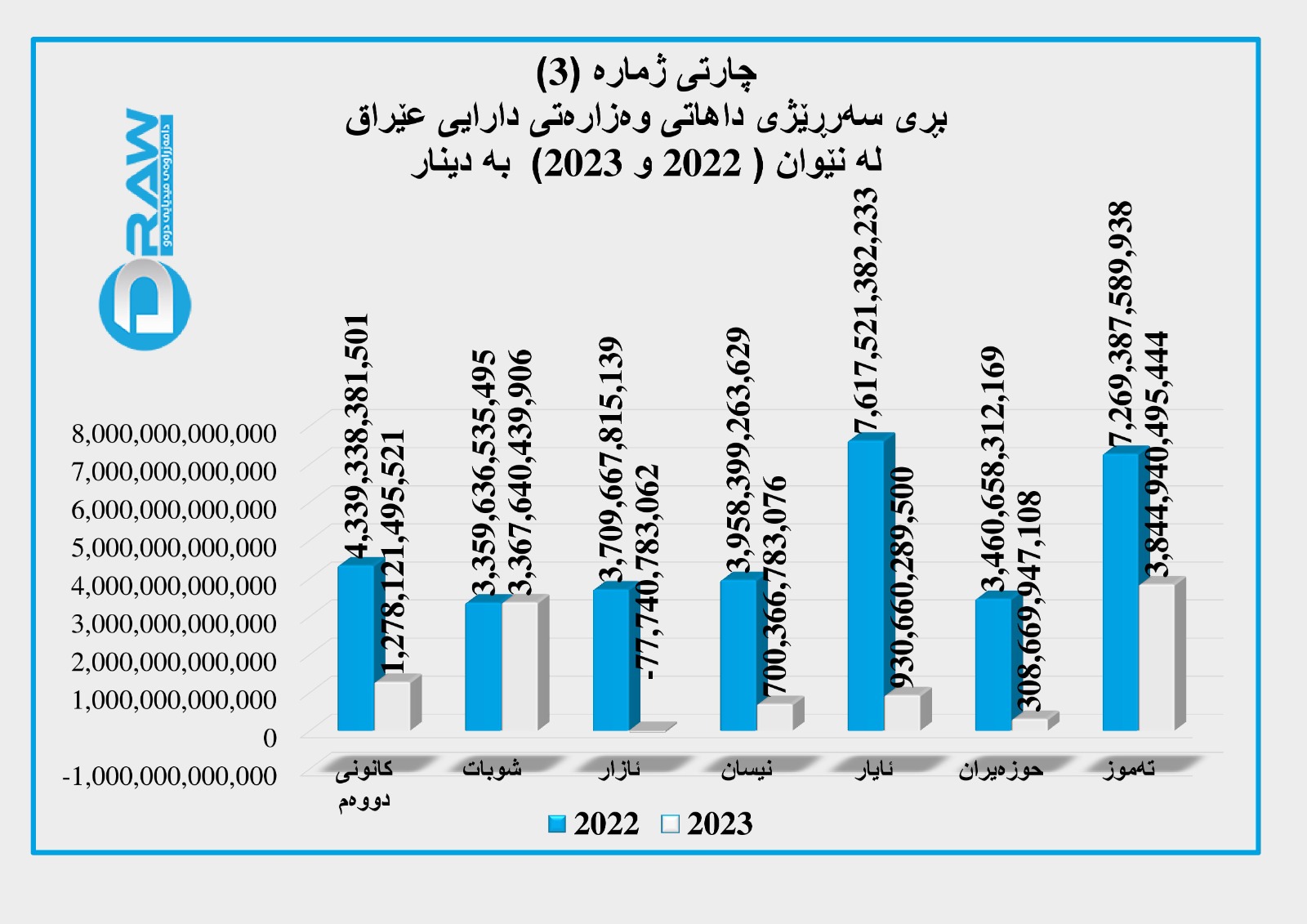 پاڵپشت بە ڕاپۆرتەکانی وەزارەتی دارایی عێراق، لە سەرەتای هەردوو ساڵی (2022 و 2023) تا کۆتایی مانگی تەموز؛