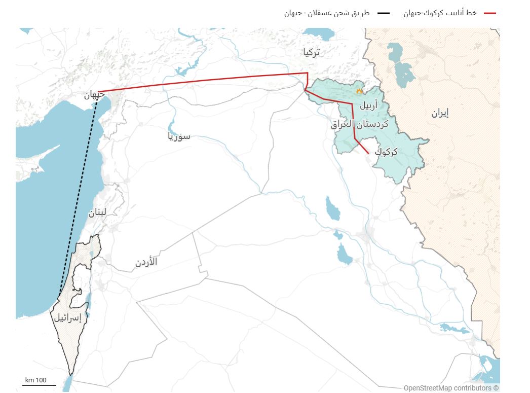 • هەتا مانگی ئازاری (2023), پێش بڕیارەكەی توركیا بە راگرتنی نەوتی باكوری عێراق, بەهۆی ململانێیەكی یاسایی لەگەڵ بەغداد, بەشێكی زۆری نەوتی خاوی هەناردەكراو لە هەرێمی كوردستانەوە رەوانەی ئیسرائیل دەكرا, لەمانگی شوباتی رابردودا, ئیسرائیل رۆژانە (183) هەزار بەرمیلی نەوتی رۆژانەی لە هەرێمی كوردستانەوە هاوردە دەكرد, كە نزیكەی نیوەی نەوتی خاوی هەناردەكراوی كوردستانی دەكرد.
