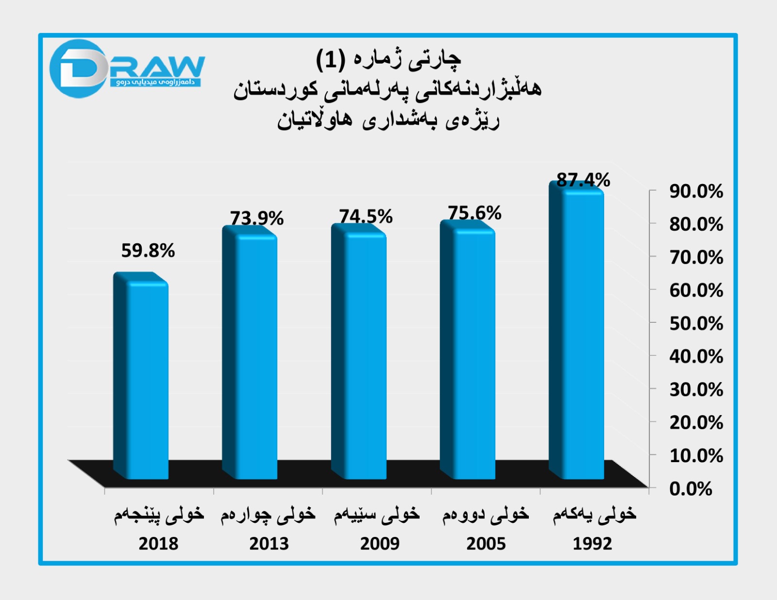 ? لە خولی یەکەمی هەڵبژاردنی پەرلەمانی کوردستانەوە لە (19/5/1992) بۆ خولی پێنجەم لە (30/9/2018)، ڕێژەی بەشداری لە (87%)ەوە بۆ (60%) دابەزیوە، ڕێژەی بایکۆتی هەڵبژاردن لە (13%)ەوە بەرزبووەتەوە بۆ (40%).
