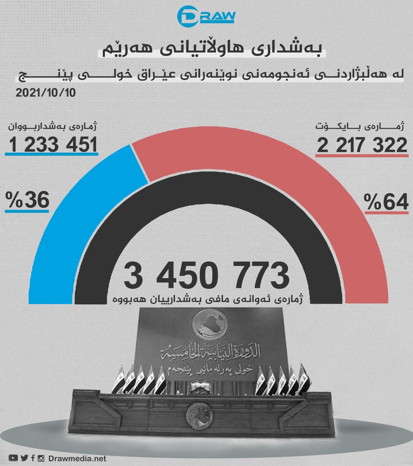 5. خولی پێنجەمی هەڵبژاردنی ئەنجومەنی نوێنەرانی عێراق کە لە (10ی 10ی 2021) بەڕێوەچوو، لەسەر ئاستی گشتی عێراق (43.5%)ی هاوڵاتیان بەشداری پرۆسەکەیان کردو (56.5%) بایکۆتی هەڵبژاردنیان کردووە.