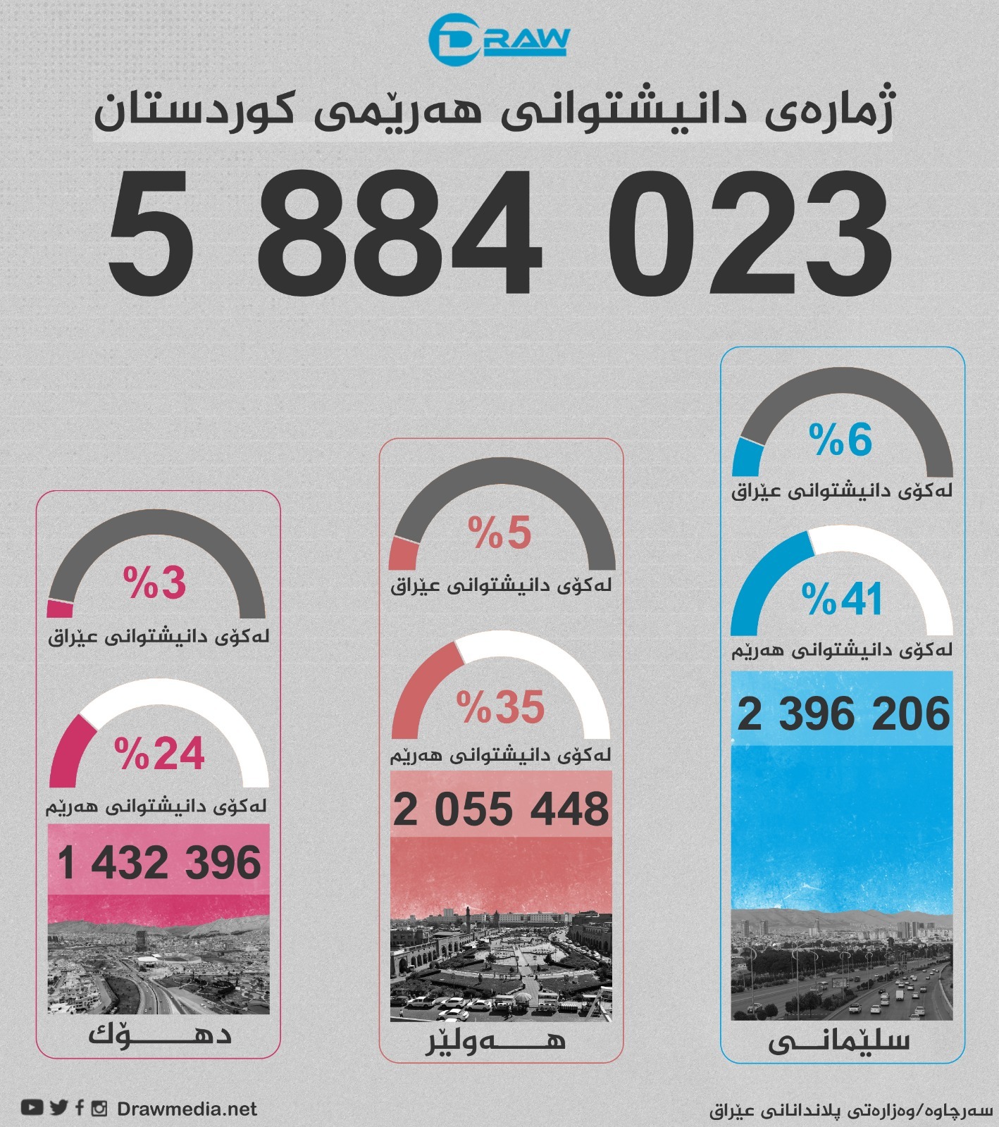 دانیشتوان لە هەرێم بەپێی داتای وەزارەتی پلاندانانی عێراق، بەمشێوەیە دابەشبووە: