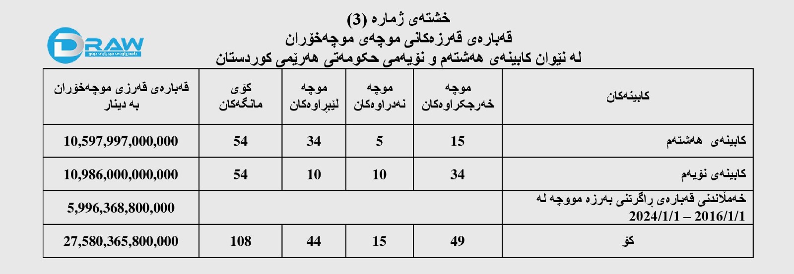 ? لە کابینەی نۆیەمدا حکومەتی هەرێم بڕی (10 ترلیۆن و 986 ملیار) دیناری موچەخۆرانی بڕیوە.