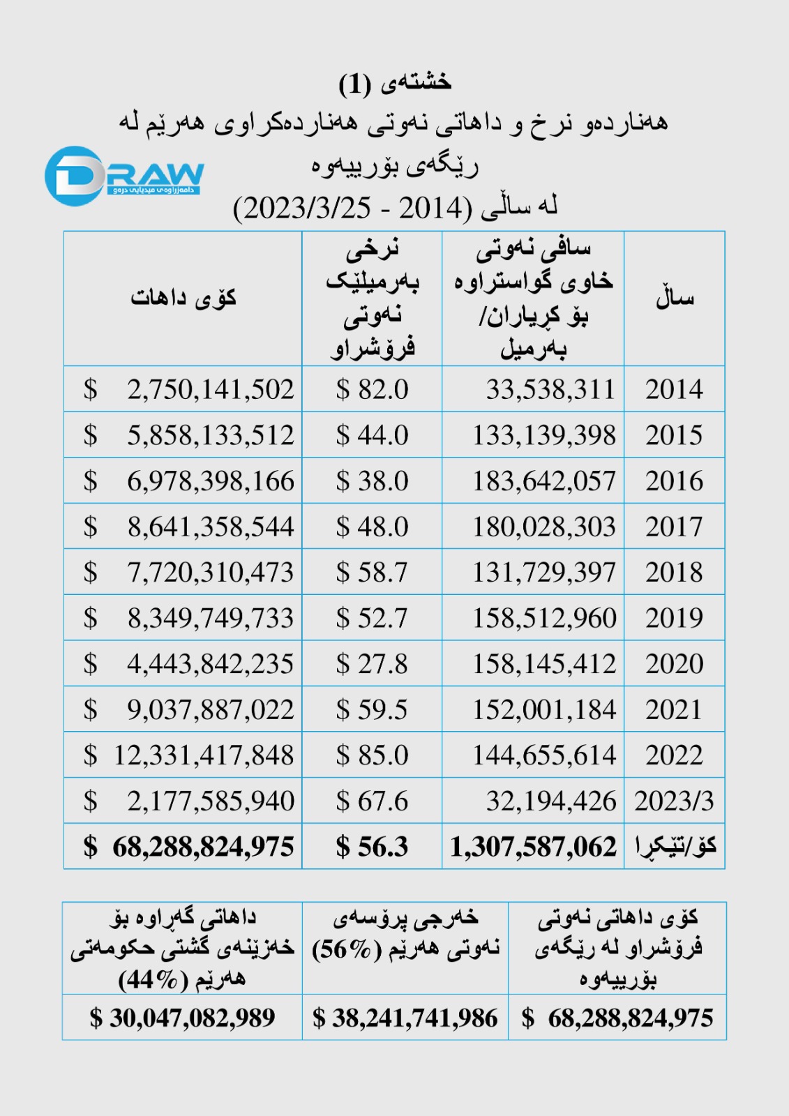 (30 ملیار) دۆلار پوختەی داهاتی نەوت بووەو (31.6 ملیار) دۆلار قەرز کەڵەکە بووە