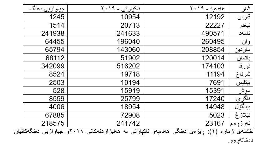 بە گوێرەی هەواڵی ئاژانسی میزۆپۆتامیا، ژمارەیەکی زۆری دەنگدەر بۆ ٢٤ پارێزگاو قەزا، کە زۆرینەیان دەکەونە باکووری کوردستانەوە، گوازراونەتەوە، بە گشتی لە مانگی ئایارەوە تاوەکو تشرینی یەکەمی ٢٠٢٣ بەرزبوونەوەو نزمبوونەوەی ڕیژەی دەنگدەر لە نێوان (٢٪) بۆ (٥٪) بووە، بەڵام لە ئامەد، شرناخ، هەکاری، ئێلیه، ئاگری، موش، ئیغدر، قارس، ئورفا، سیرت، ماردینو دەرسیم لە ماوەی تەنها ٦ مانگدا ڕێژەی دەنگدەر لە (٧٪)ەوە بۆ (٢٢٪) بەرزبووەتەوە. لە ١١ شوێن لەو ناوچانەی کە بە ڕێژەیەکی زۆر دەنگدەری بۆ گوێزراوەتەوە، لە هەڵبژاردنی شارەوانییەکانی ٢٠١٩ هەدەپە/دەمپارتی سەرکەوتنی بەدەستهێناوە، لە ٧ ناوچەی دیکەش ئاکپارتی بە پشتیوانیی دەنگی گوازراوەو دەنگدەری پارتەکانی دیکە بردوویەتیەوە.[xvii]