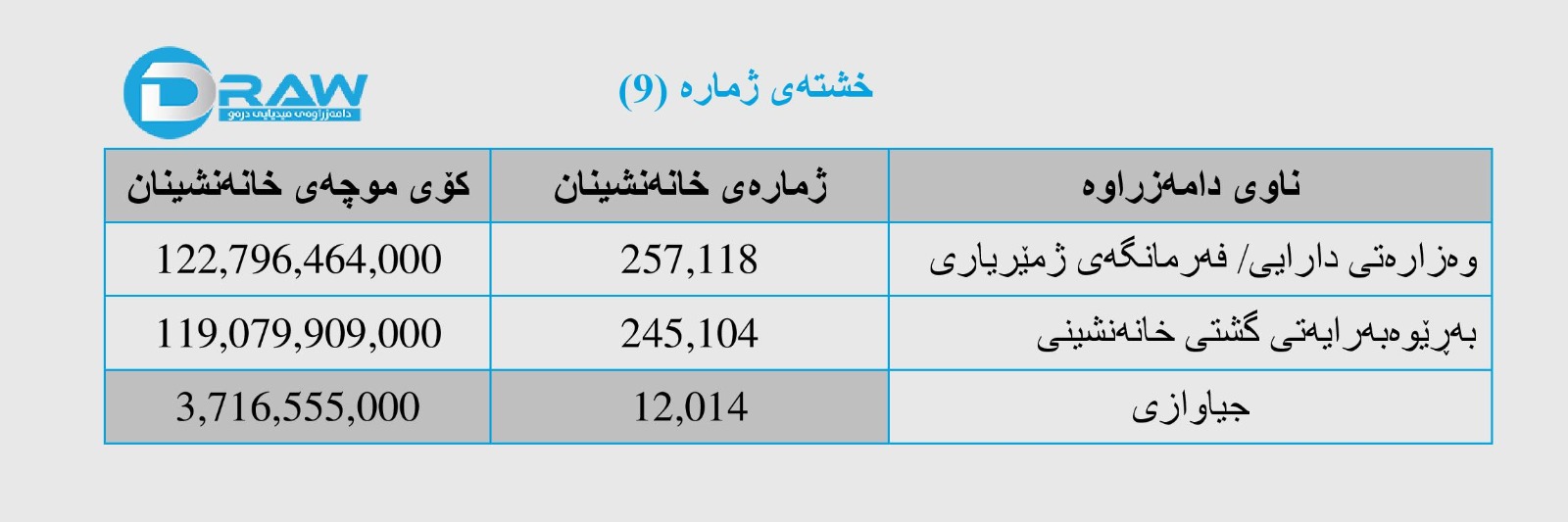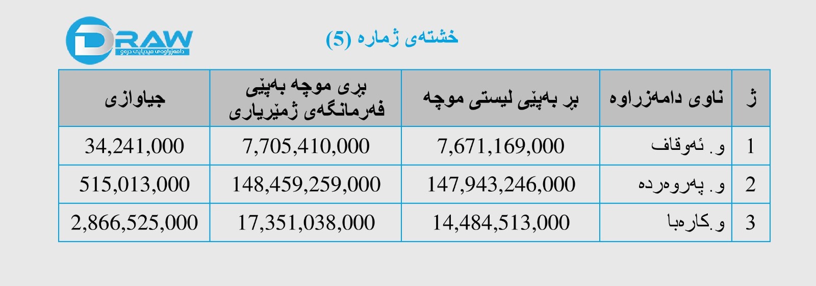 5. فەرمانگەی بودجە تەنها ژمارە و میلاکاتی (سەرۆکایەتی هەرێم و دەزگا ئەمنییەکان)ی پێداوە بە تیمە هاوبەشەکە، داتاکانیش بەم جۆرە بوونە. بڕوانە خشتەی ژمارە (1).