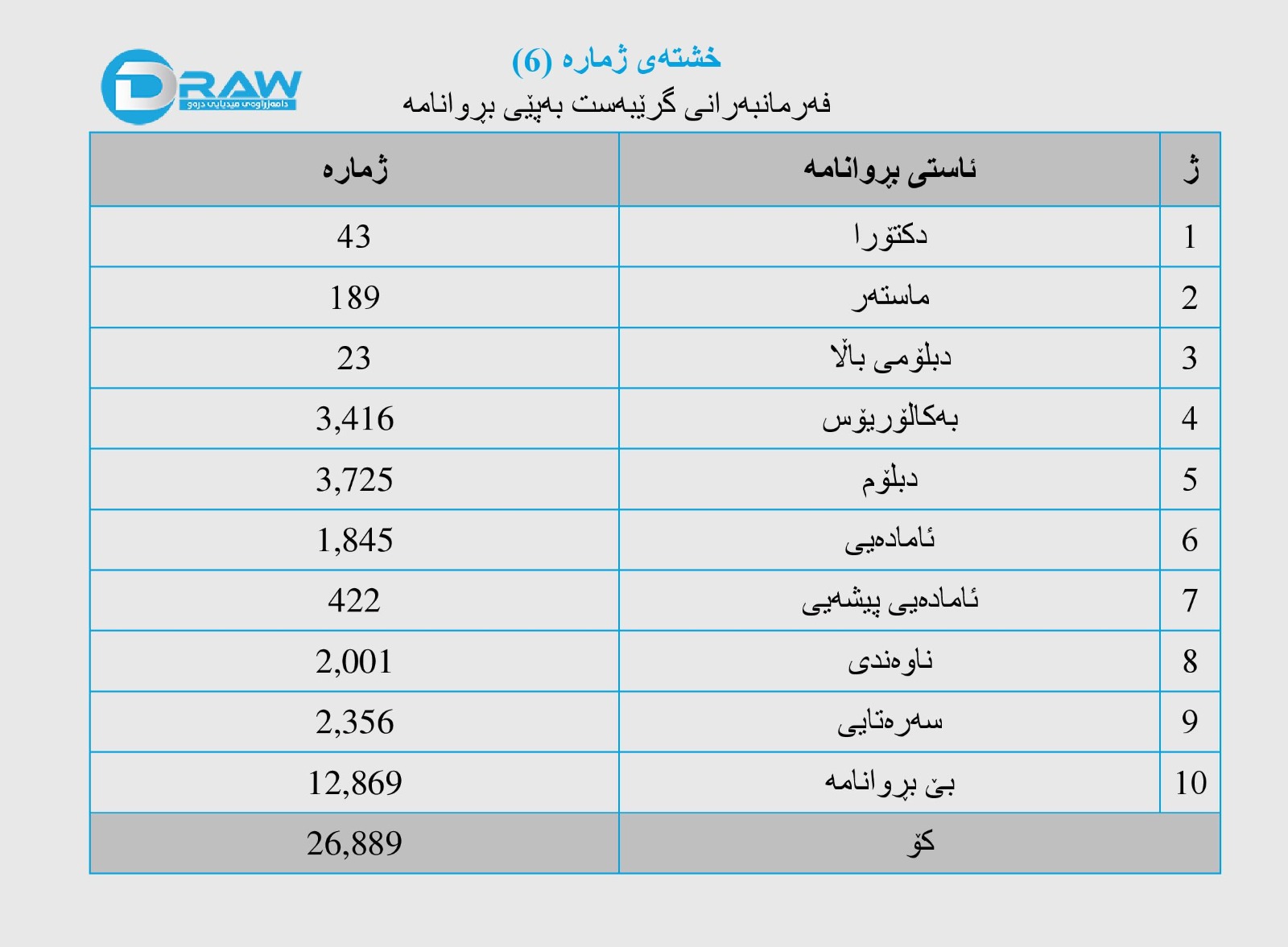 7. ژمارەی فەرمانبەرانی گرێبەست لەسەر ئاستی هەرێمی کوردستان لە مانگی (حوزەیرانی 2023) بە پێی پسپۆڕی و بڕوانامە جیاوازەکان (26 هەزار و 889) فەرمانبەرن و کۆی موچەکەیان (12 ملیار و 394 ملیۆن و 596 هەزار) دینارە، بەپێی داتاکانی فەرمانگەی ژێریاری هەرێم. وەک ئەوەی لە خشتەی ژمارە (6)دا رونکراوەتەوە.