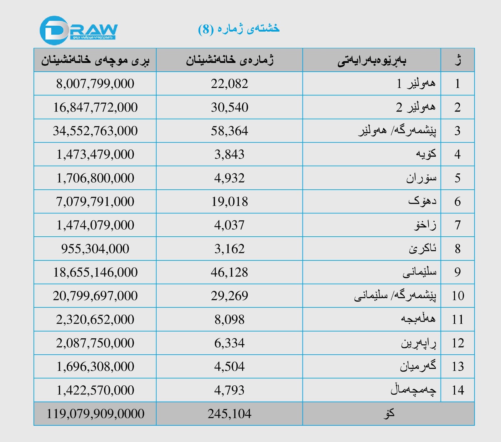 4. تیمەکە بۆ مەبەستی وردبینی پشتیان بە داتاکانی هەردوو فەرمانگەی (بودجەو ژمێریای) وەزارەتی دارایی حکومەتی هەرێمی کورستان بەستووە.