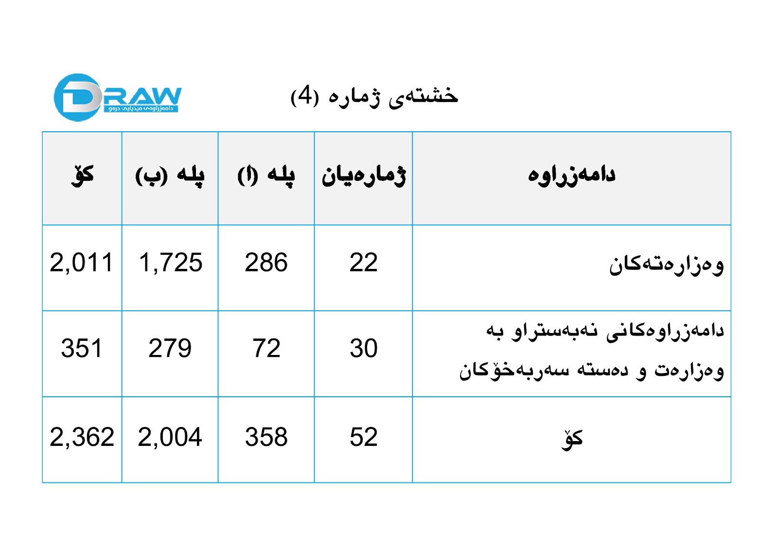 ? (24%) پلە باڵاکانی عێراق لە هەرێمی کوردستانن کە (329)یان پلەی (ا) و (هەزار و 161) یان پلەی (ب)یان هەیە.