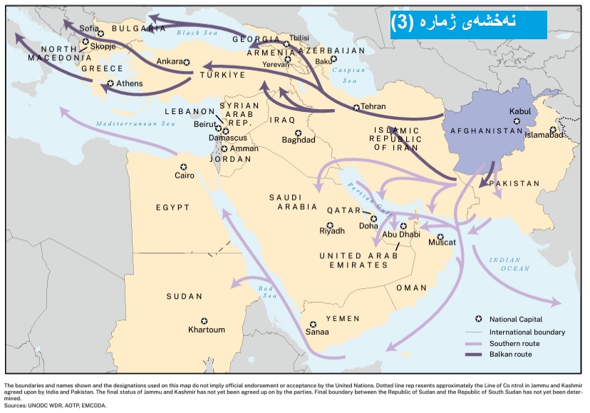 هەرچۆنێک بێت ئێستا هەرێمی کوردستان کەوتووتە سەر ئەو نەخشە جیهانییەی کە ڕێڕەوەکانی گواستنەوەی ماددەی هۆشبەرەکانی لێوە دەگوازرێتەوە، بەو مانایەی کە تەنها هاوردەکار و بەکاربەر و بەرهەم هێن نییە بەڵکو گوێزرەوەشە لەم بارەیەوە بڕوانە (نەخشەی ژمارە (3)).
