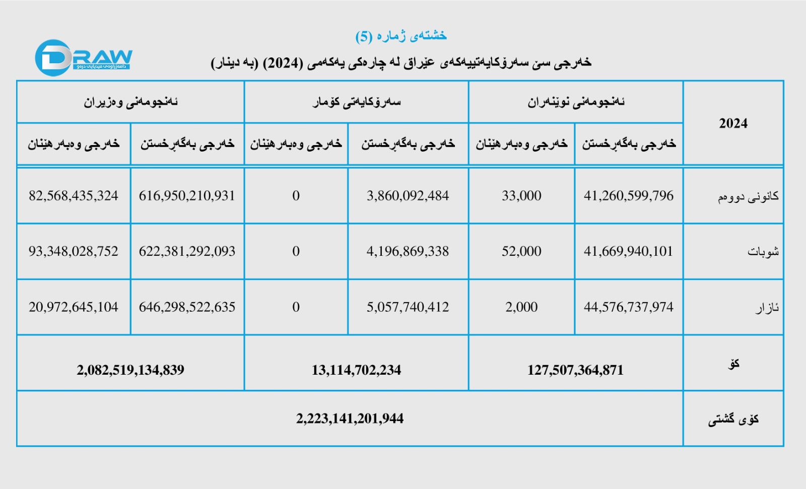بۆ وردەکاری خەرجی سێ سەرۆکایەتییەکە لە سێ مانگی یەکەمی ساڵی (2024) بڕوانە (خشتەی ژمارە (5)).