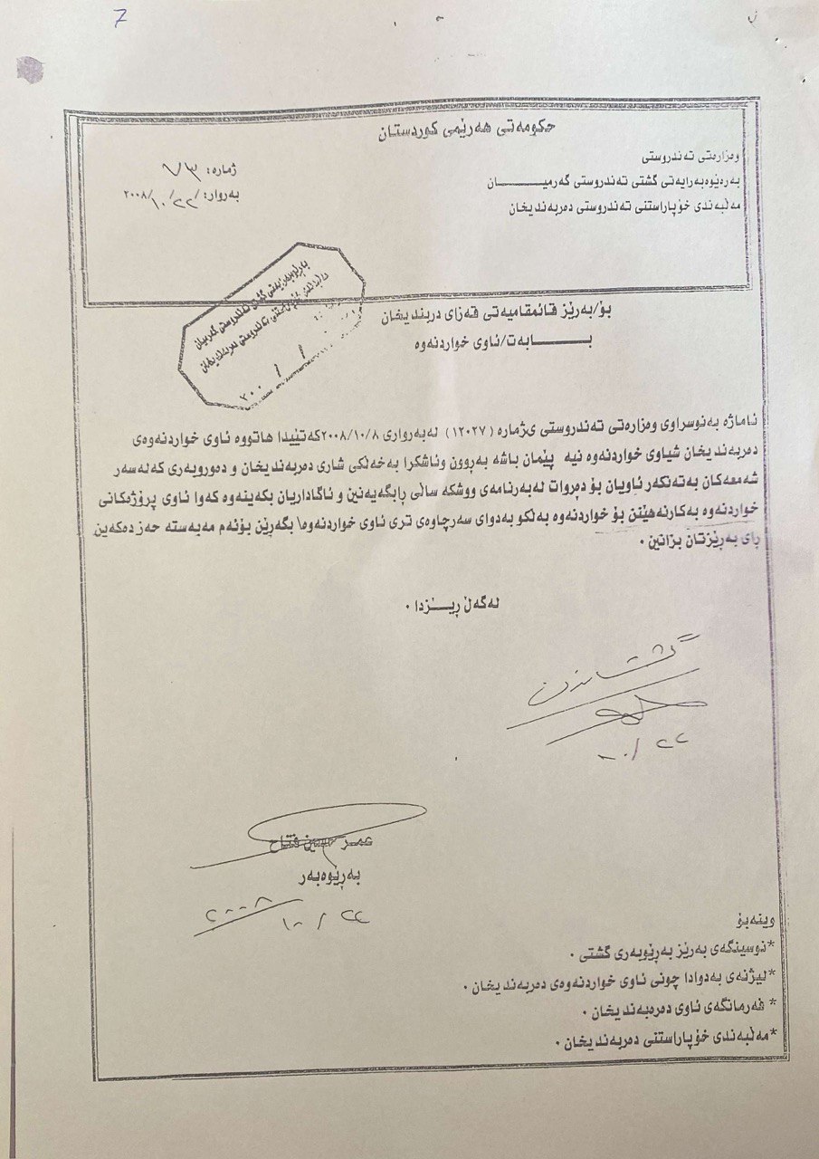 لە نوسراوەکەدا پشتڕاستکراوەتەوە کە ئاوەکە شیاو نییە بۆ خواردنەوە، هەروەها داوای سەپاندنی چاودێری زیاتر و ئەنجامدانی پشکنینی ڕۆژانە، و پێکهێنانی لیژنەی هاوبەش لەگەڵ شارەوانییەکان بۆ ئەنجامدانی سەردان بۆ ئەو شوێنانەی کە کلۆریان بۆ ئاوەکە زیاد دەکرێت، لە نزیکەوە پێداچونەوەی خۆیان بکەن، و هەر کەموکوڕییەک کە ڕوویدا ڕاستی بکەنەوە.