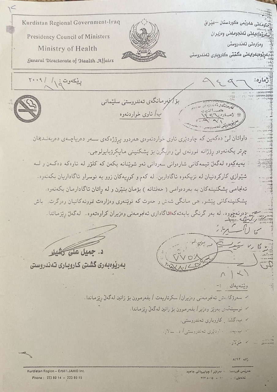 ئەو کێشەیە بە درێژایی مانگەکانی ساڵی دواتر بەردەوام بوو، بەپێی ئەوەی لە نوسراوێکی فەرمیدا کە لە وەزارەتی کاروباری تەندروستییەوە بۆ فەرمانگەی تەندروستی سلێمانی لە مانگی ئابی 2009 دا نێردراوە، کە تیایدا ئاگاداری کردۆتەوە لە ئەنجامی "باش نەبوون"ی پشکنینی (مایکرۆبایۆلۆجی) کە لە مانگەکانی حوزەیران و تەمموزدا ئەنجامدرا لەسەر ئەو ئاوەی کە بڕیار بوو بۆ چارەسەرکردنی دەریاچەی دەربەندیخان ڕێگەی وێستگەی پاککەرەوەی کارپێکردنی کۆنەوە ئەنجامدرابێت.