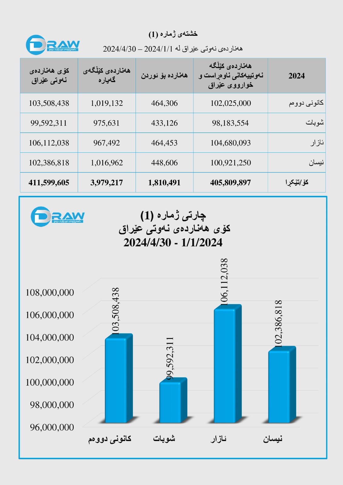 وەزارەتی نەوتی عێراق لە چوار مانگی یەکەمی ساڵی (2024)دا؛
