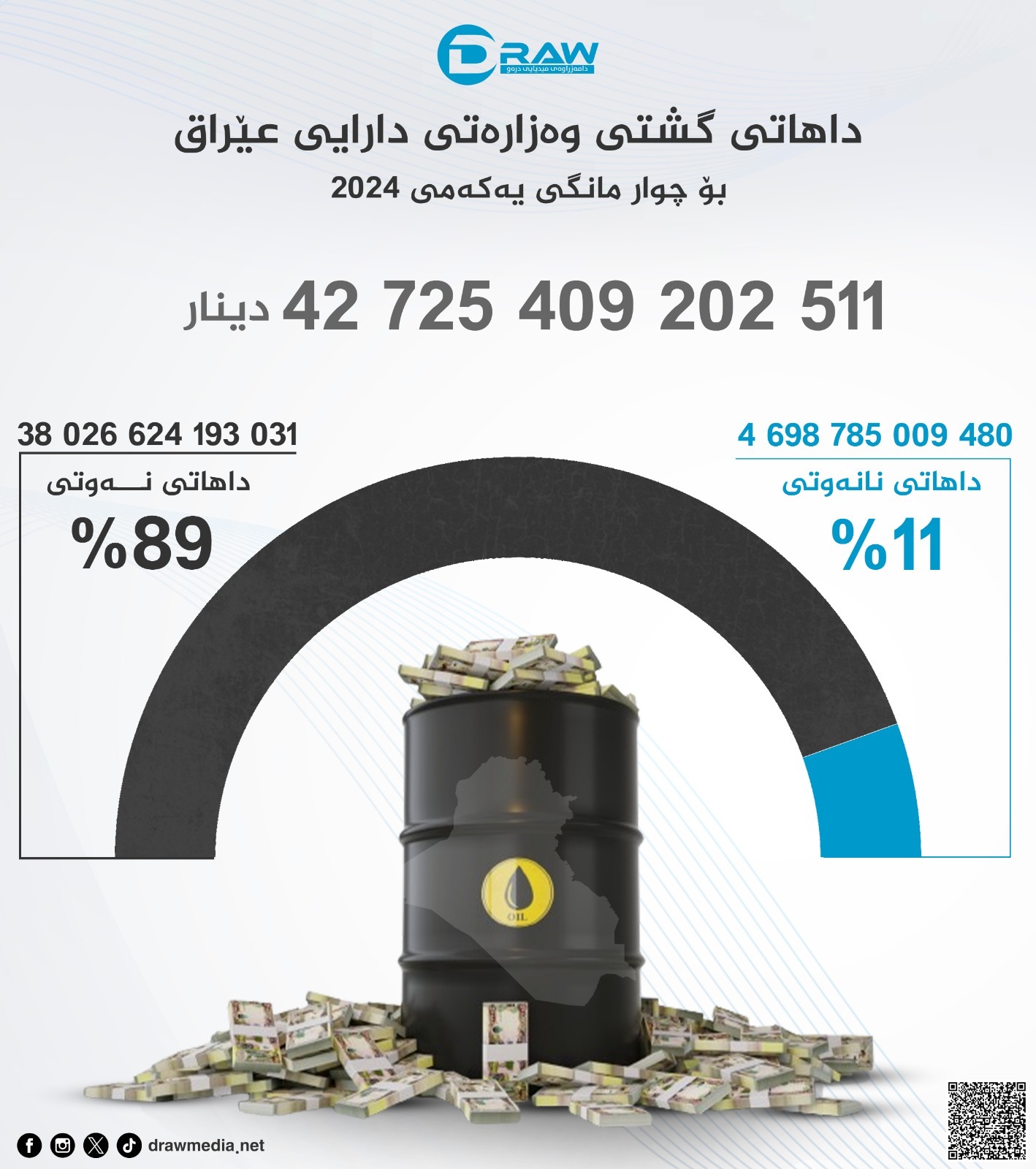 ? زیاتر لە (38 ترلیۆن و 26 ملیار) دینار بووەو (89%) کۆی داهاتی وەزارەتەکەی پێکهێناوە.