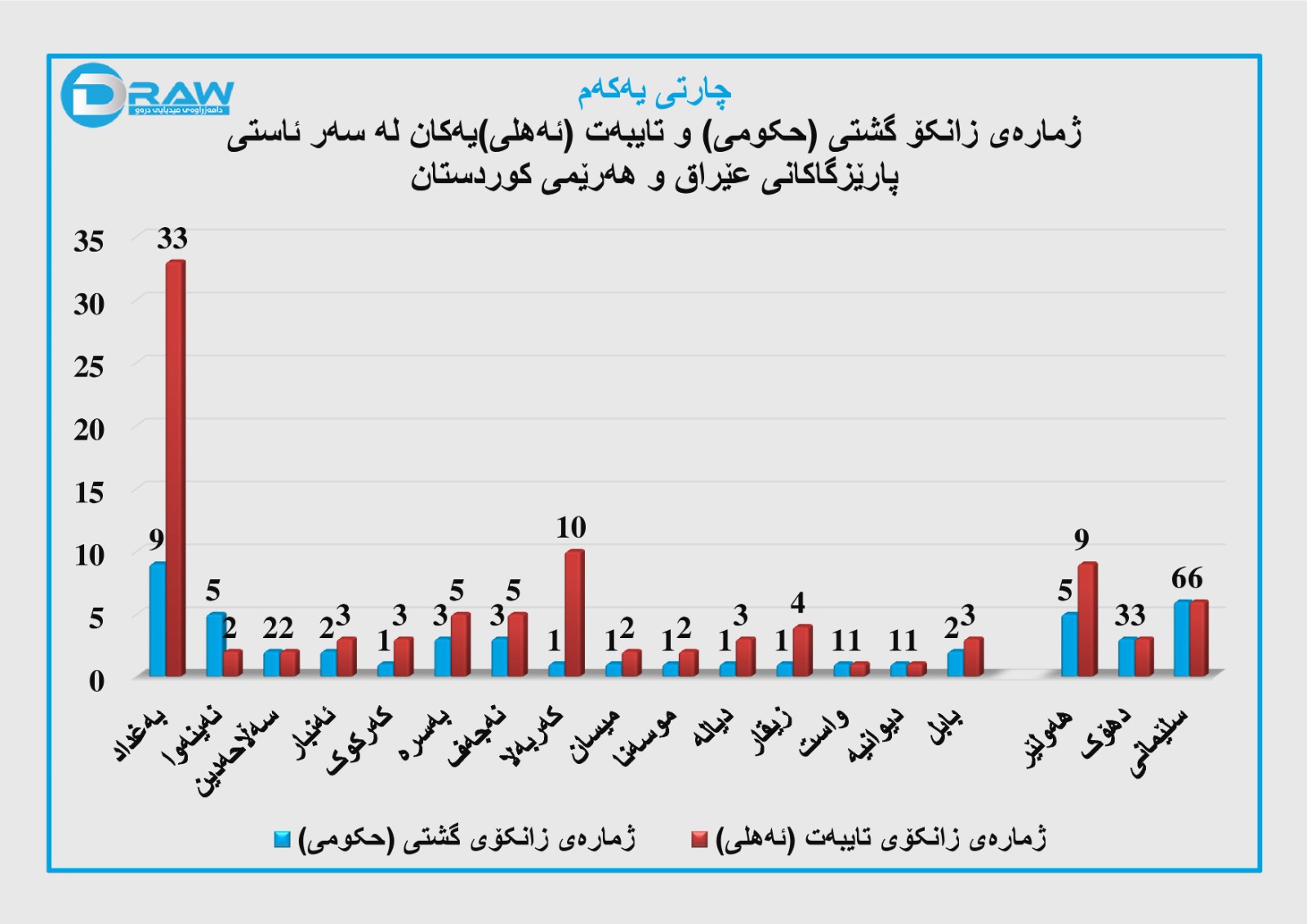 ژمارەی زانکۆ گشتی و تایبەت (ئەهلی)یەکان لە سەر ئاستی پارێزگاکانی عێراق و هەرێمی کوردستان