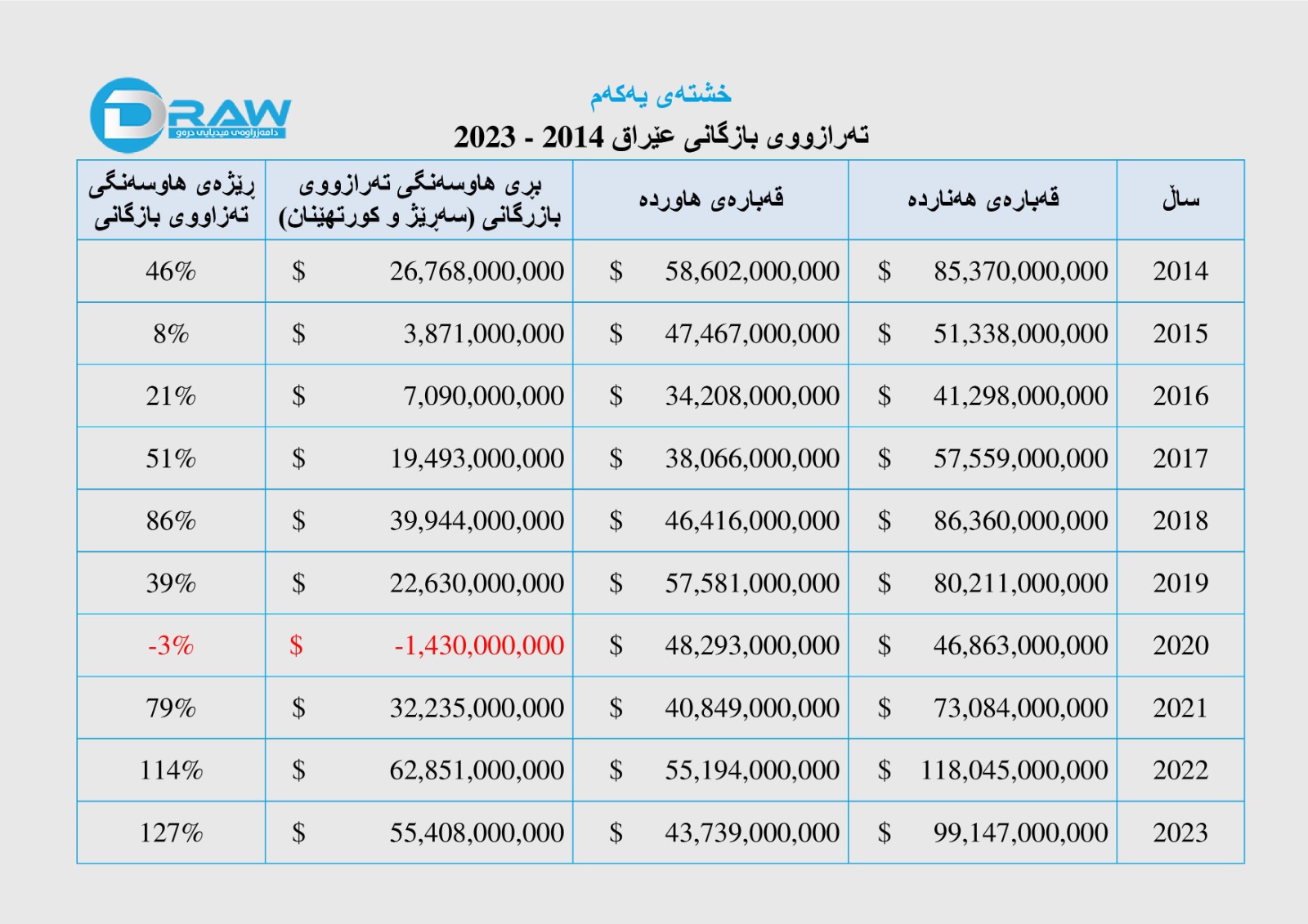 یەکەم؛ تەرازووی بازرگانی عێراق 2014 – 2023